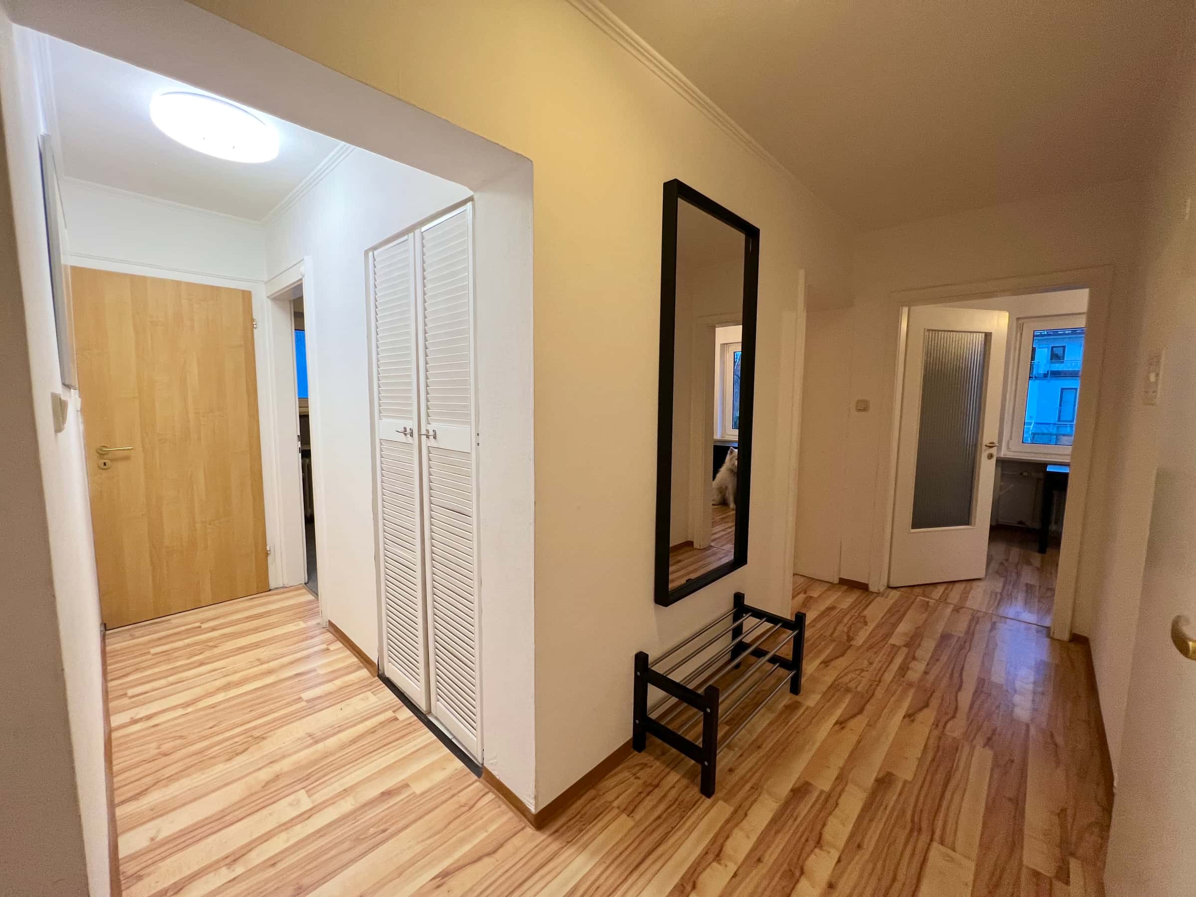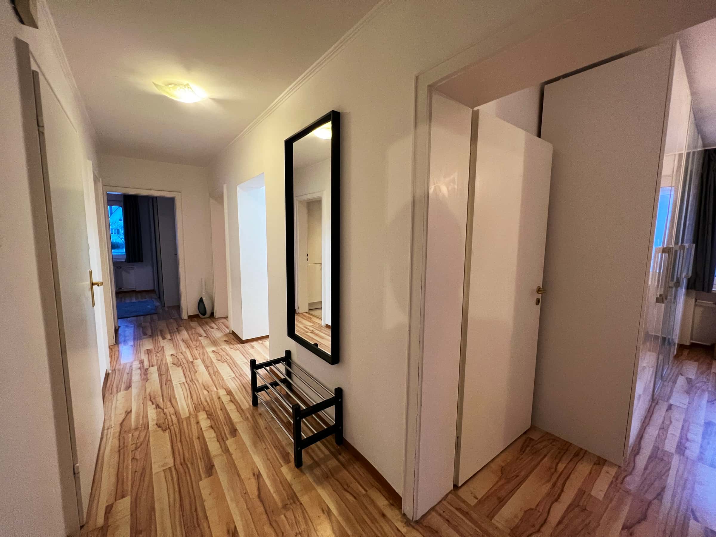 The generous hallway gives a very inviting impression and provides access to all rooms of the large apartment.