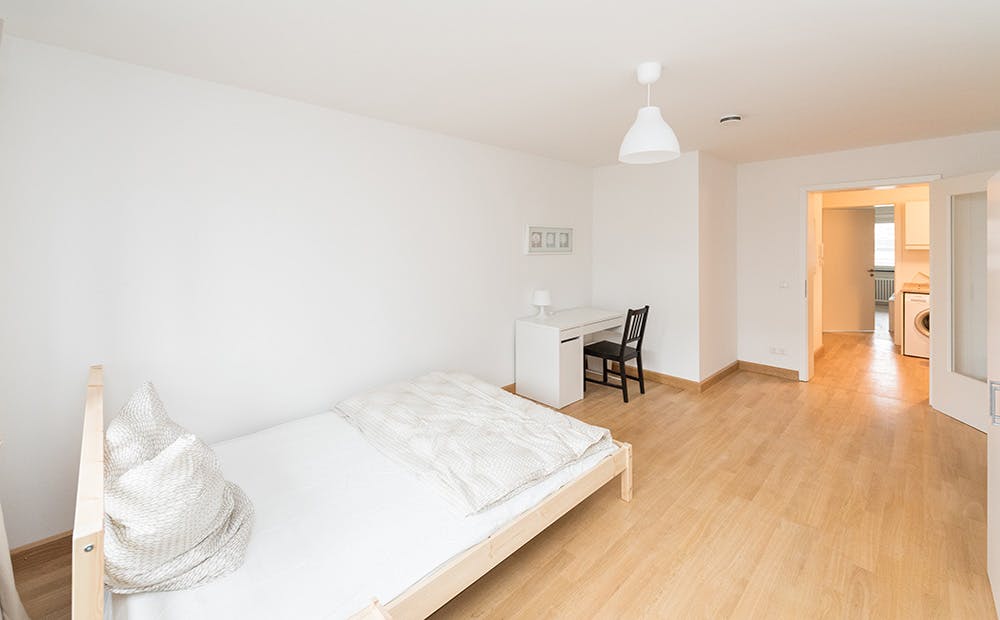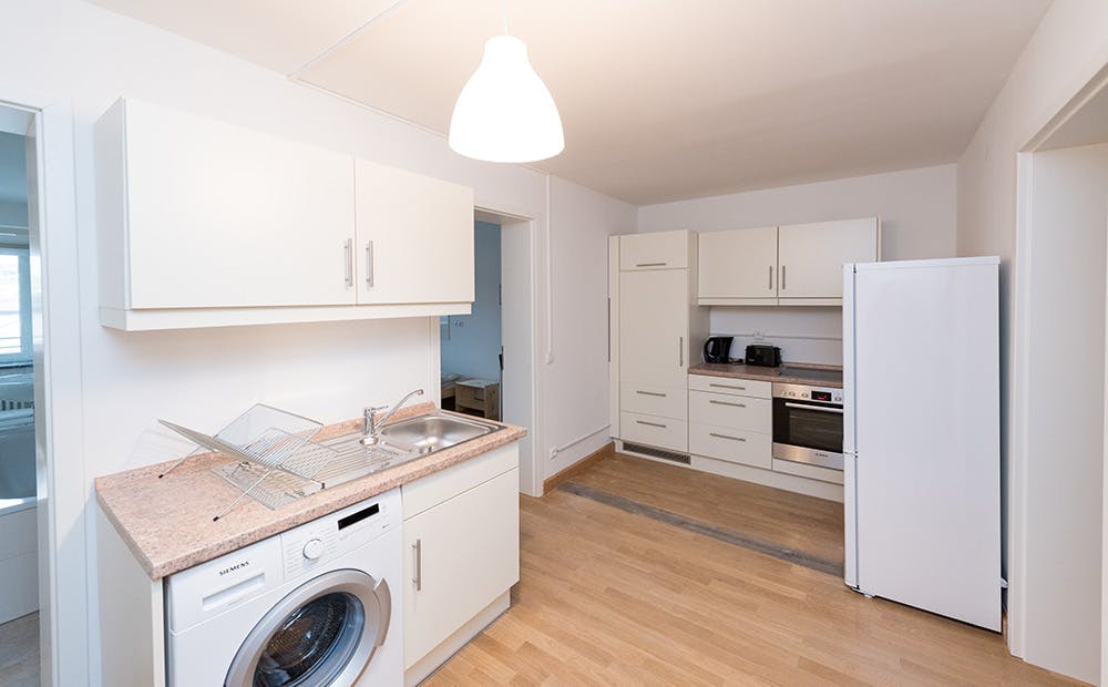 Our flats fulfil all your daily living requirements. Every flat comes readily equipped with a kitchen, including refrigerator, cooking equipment and dishes. Flats also include a washing machine and Wi-Fi Internet. Each room is fully furnished and offers a comfortable bed with fresh linen and a workspace. The area provides you with several shopping opportunities and excellent connections to public transport.