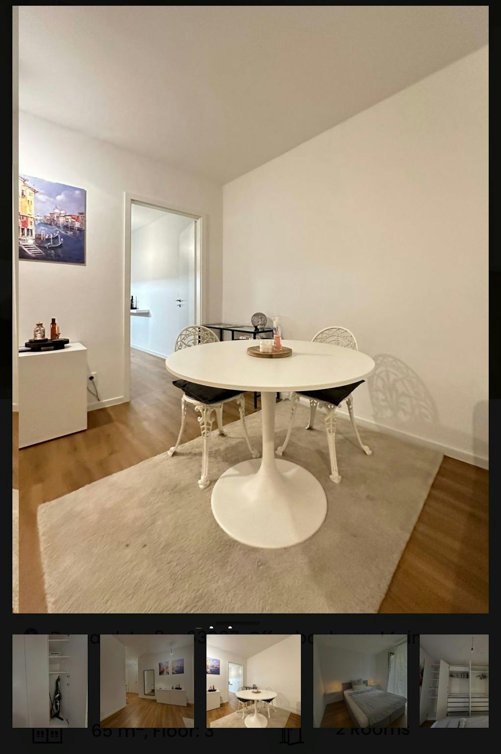 I am offering my beautifully designed and fully furnished 2-room apartment for sublet. The apartment is located in a modern, well-maintained new building and features underfloor heating throughout. With 70 square metres of living space and a spacious balcony, it offers a bright and comfortable home atmosphere.