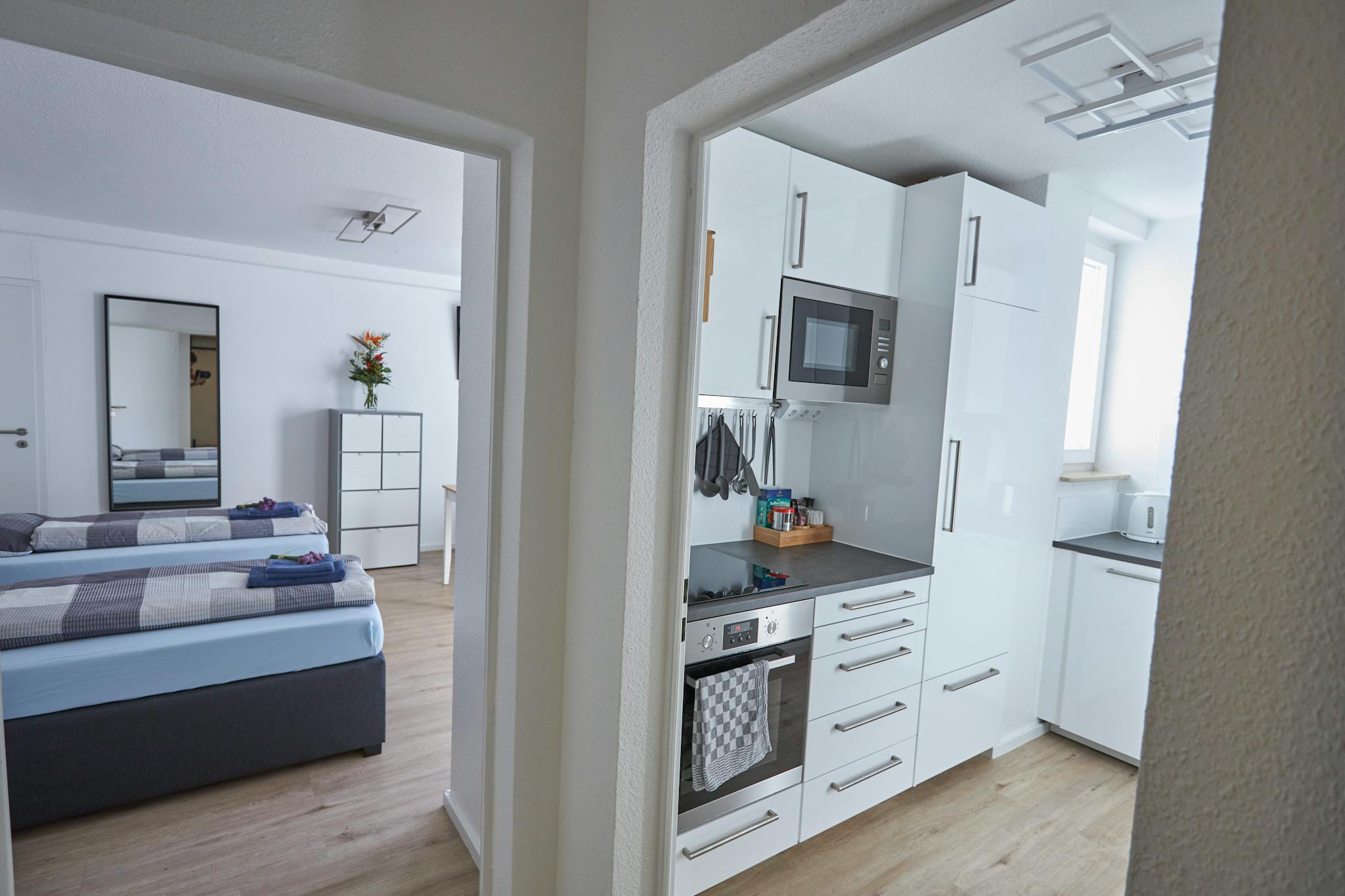 The property is located in a lively area in Offenbach am Main (Waldheim). Bus lines 103 and 120 operate nearby. Within walking distance you’ll find several restaurants, supermarkets, two bakeries, and a café.