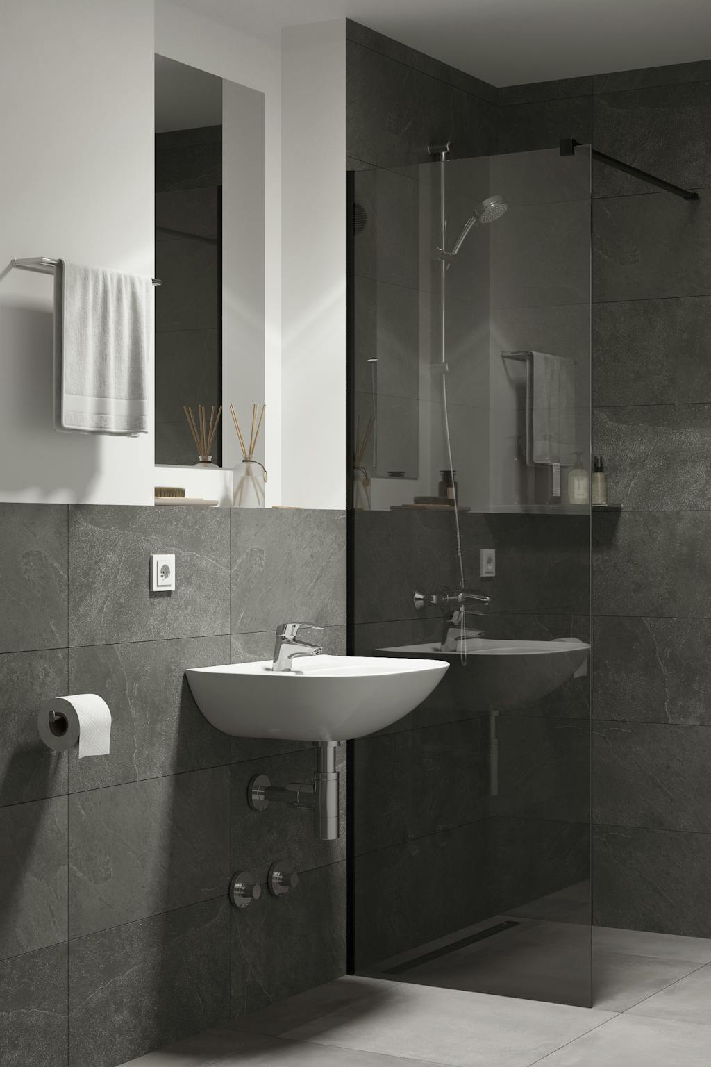 Unsere Wohnungen verfügen außerdem über einen Arbeits-/Esstisch mit Designerstühlen, einen hochwertigen Kleiderschrank und ein luxuriöses Badezimmer mit Handtüchern und Badetüchern. Und für einen zusätzlichen Touch von Eleganz bieten ausgewählte Apartments eine Terrasse oder einen Balkon, von wo aus du atemberaubende Stadtblicke genießen kannst.