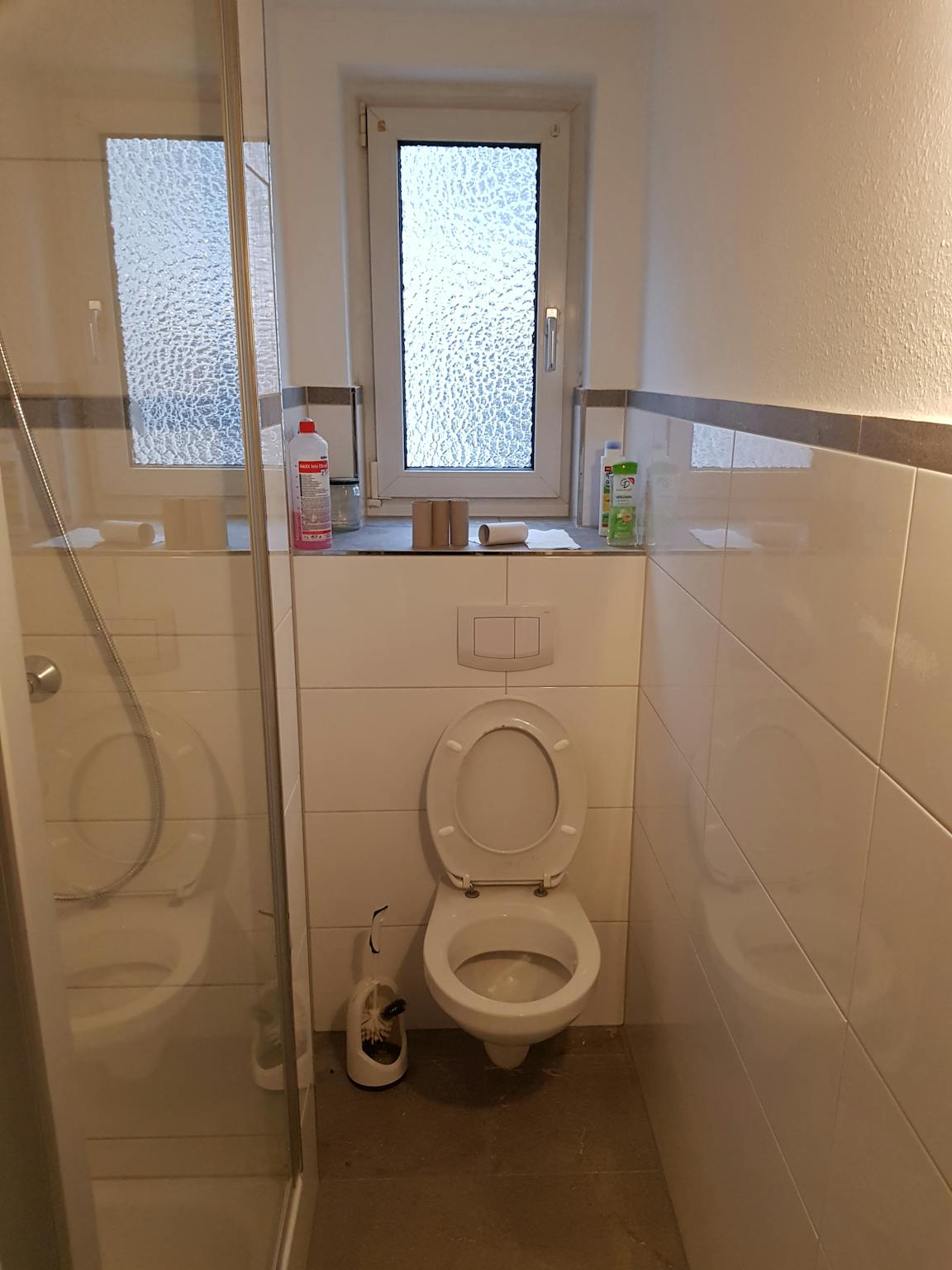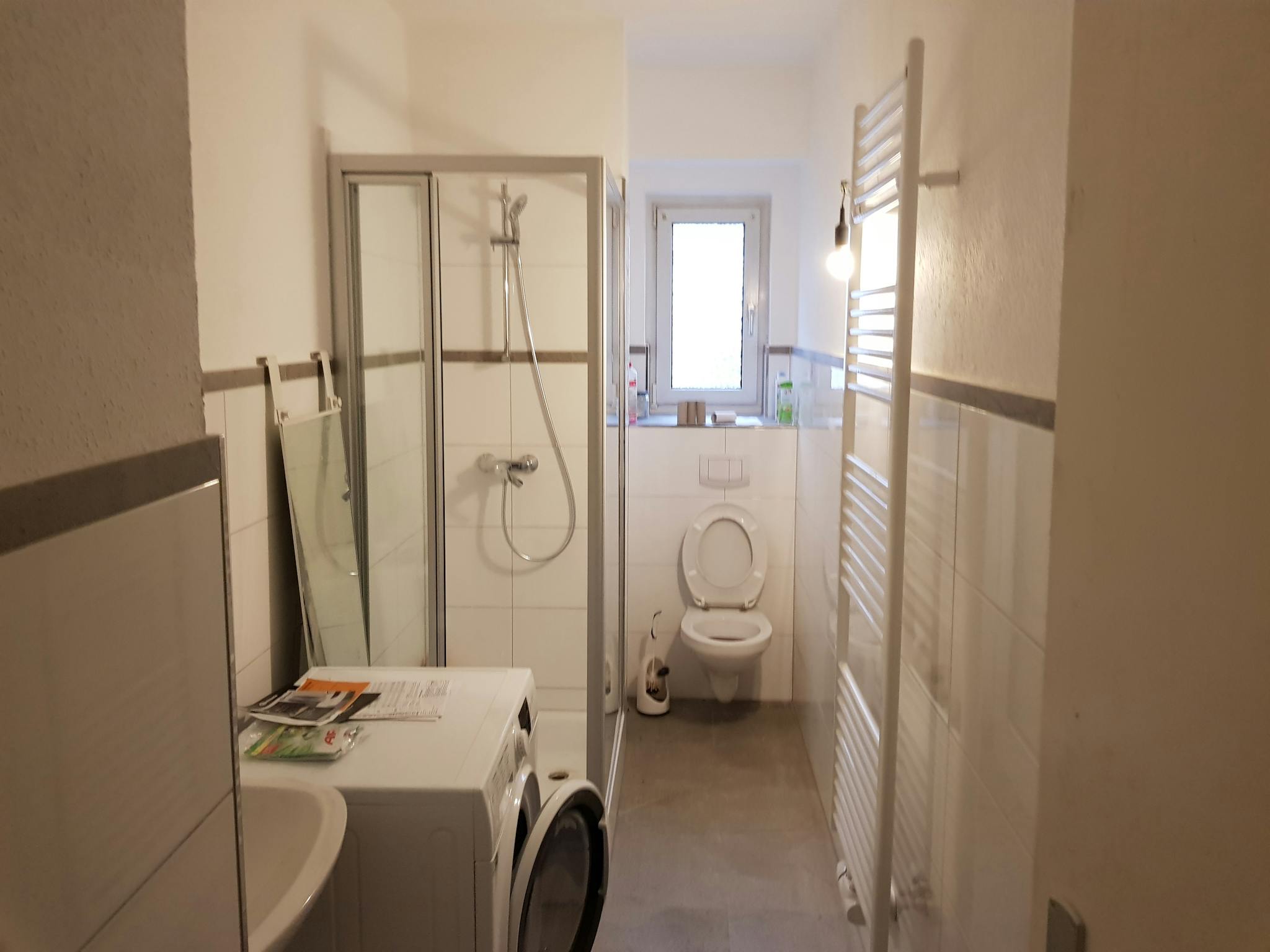 Darüber hinaus steht Ihnen ein Gemeinschaftsbad mit WC und Dusche zur Verfügung. Die Einrichtung wird mit den Bewohnern drei weiterer Apartmentzimmer geteilt. Das Badezimmer wurde 2018 vollständig kernsaniert. Die Dusche wird in den kommenden Monaten ebenfalls noch einmal generalüberholt und eine neue Duschwand wird eingesetzt.