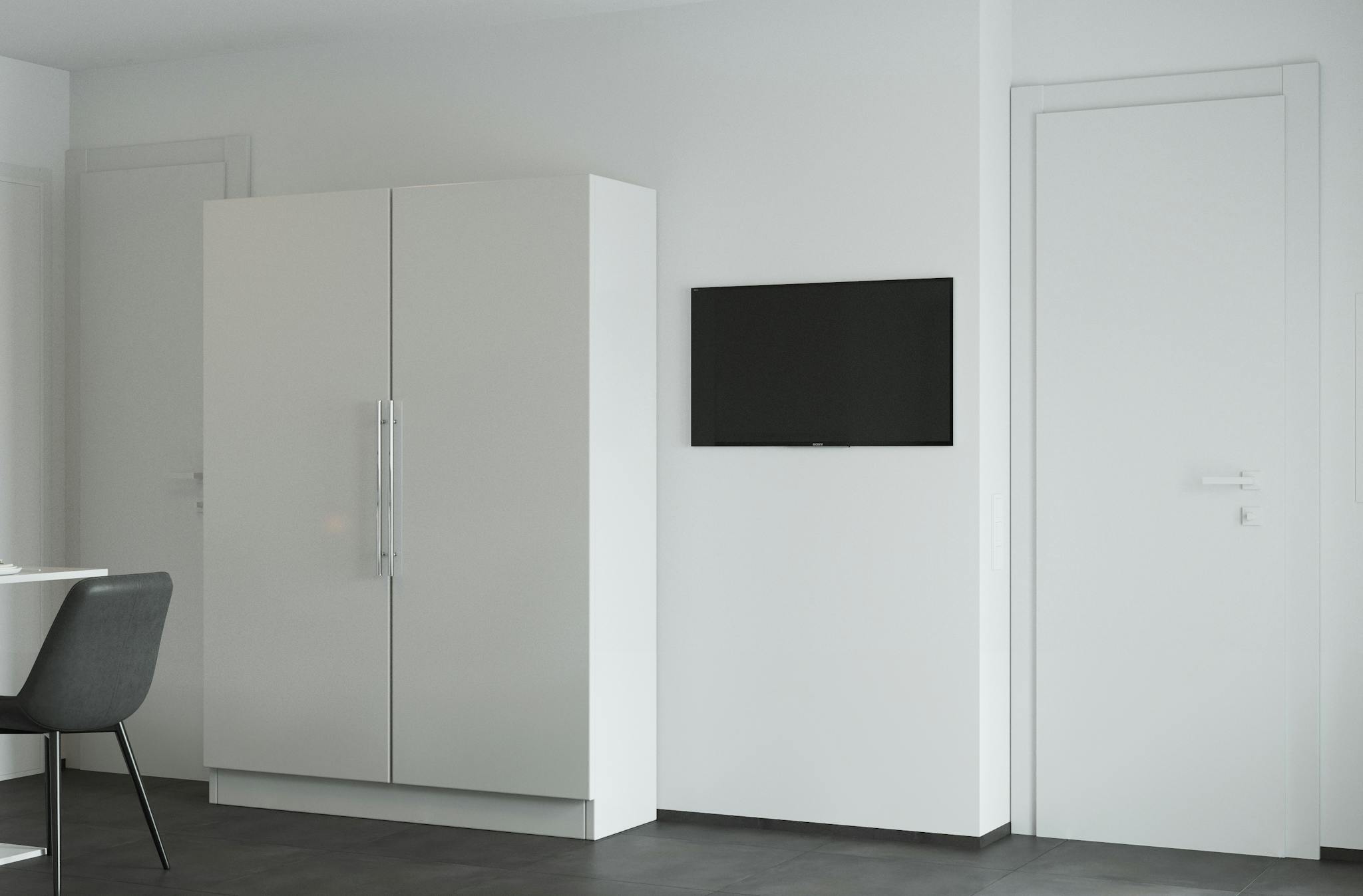 Unsere Wohnungen verfügen außerdem über einen Arbeits-/Esstisch mit Designerstühlen, einen hochwertigen Kleiderschrank und ein luxuriöses Badezimmer mit Handtüchern und Badetüchern. Und für einen zusätzlichen Touch von Eleganz bieten ausgewählte Apartments eine Terrasse oder einen Balkon, von wo aus du atemberaubende Stadtblicke genießen kannst.