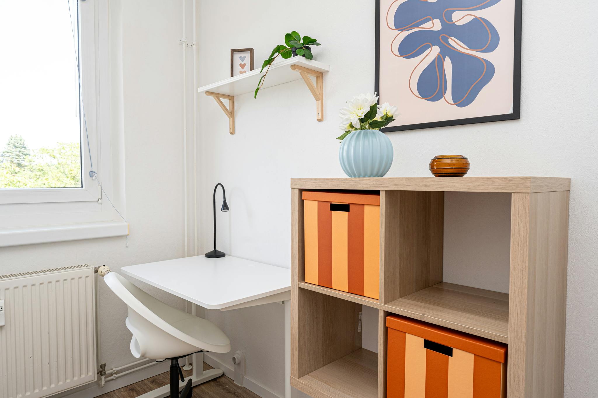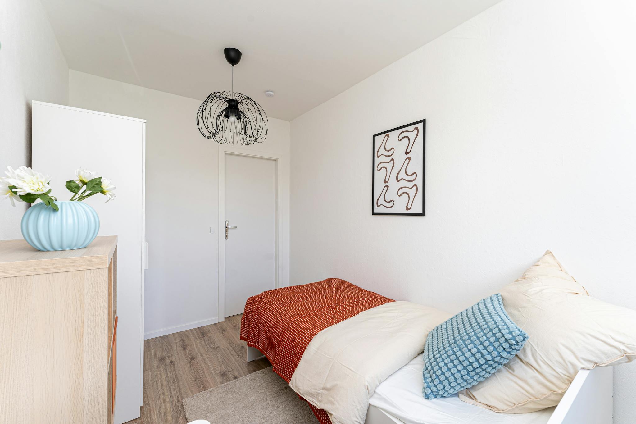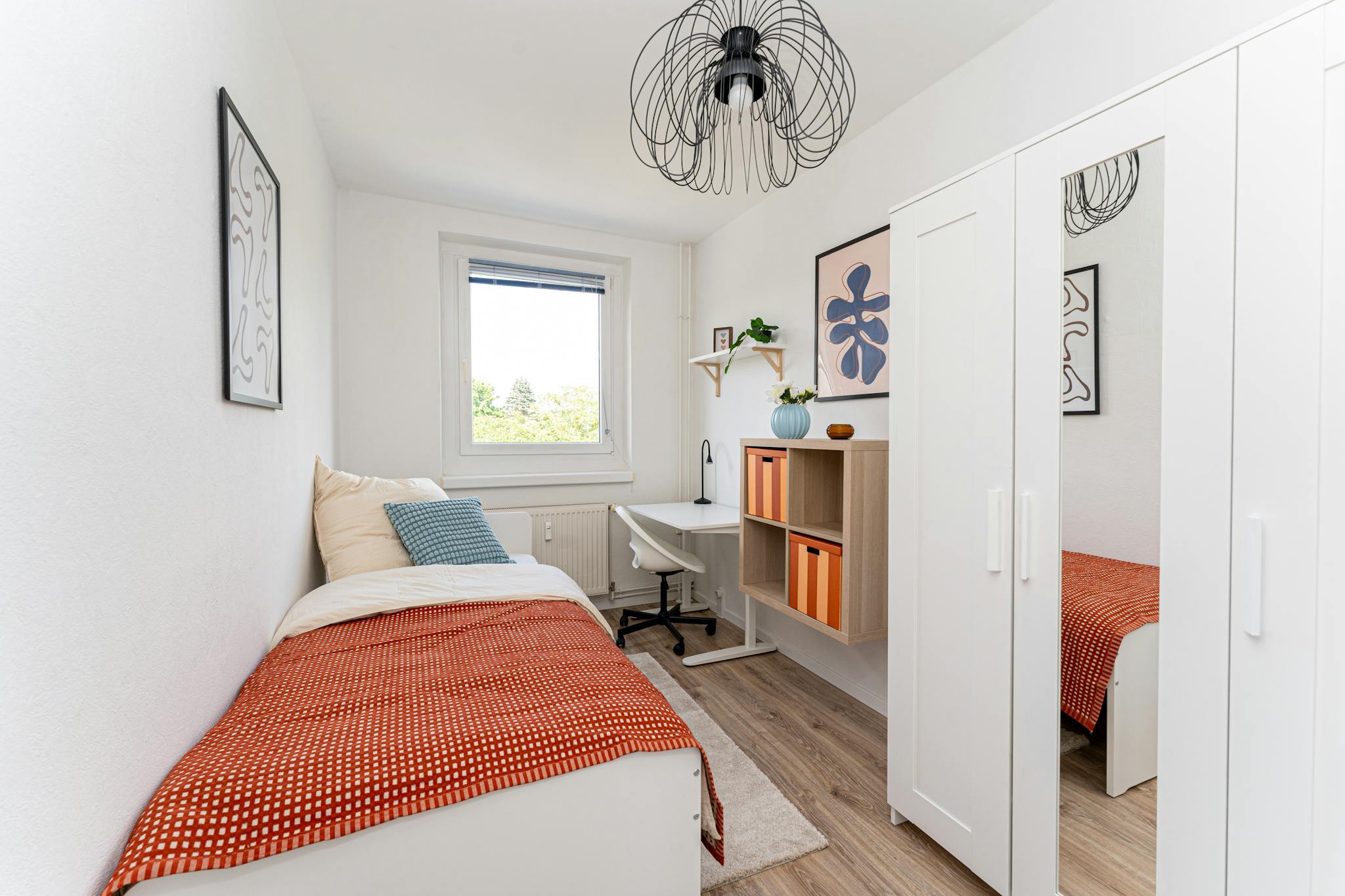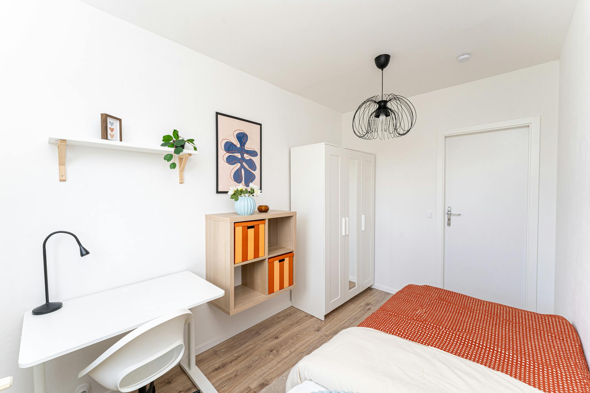 this is a fully furnished room in a shared flat. The room has a comfortable bed, a desk with chair and a wardrobe for your clothes. Also the common areas are fully equipped with washing machine, cooking equipment and all you need for your daily living.