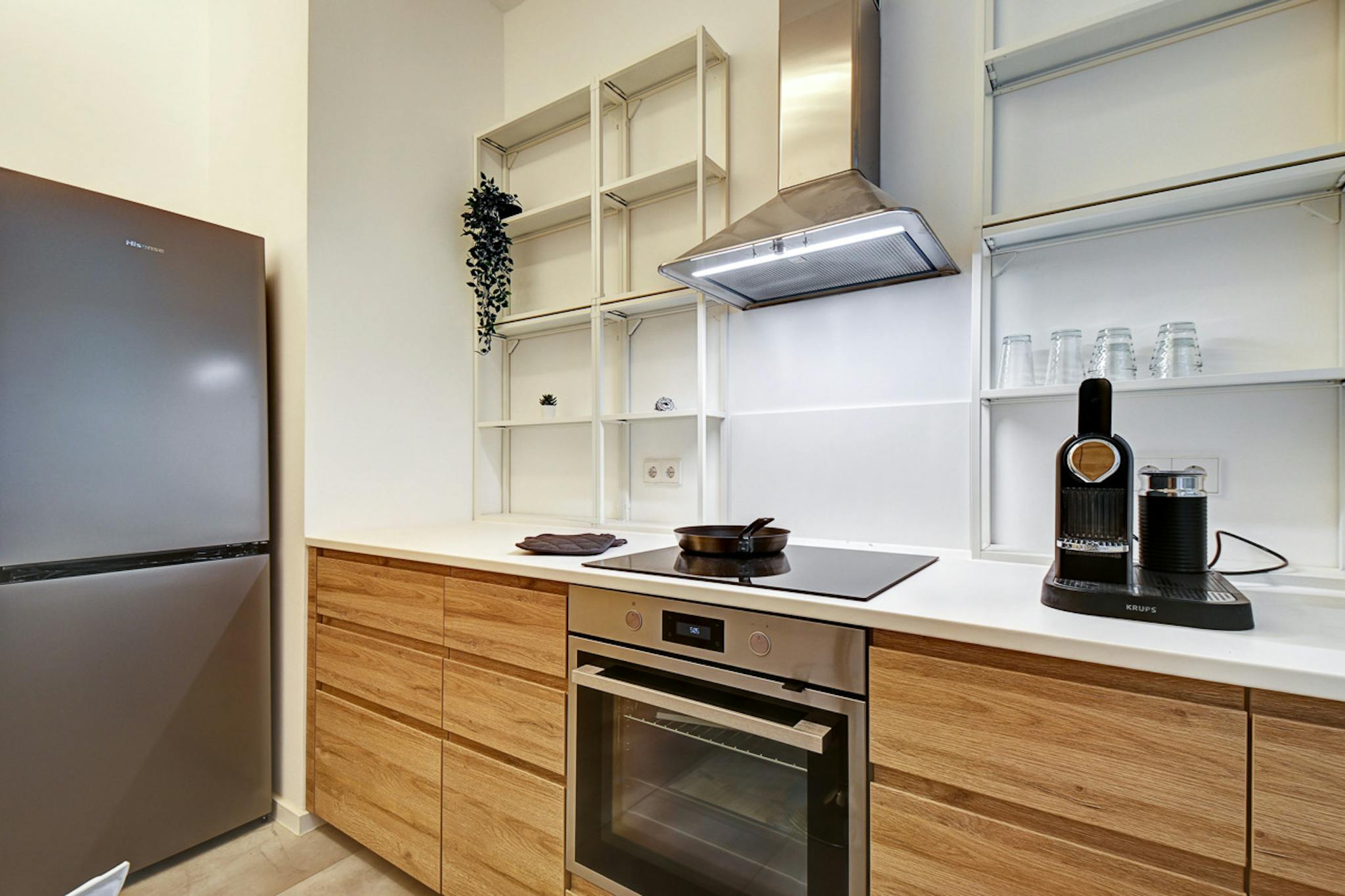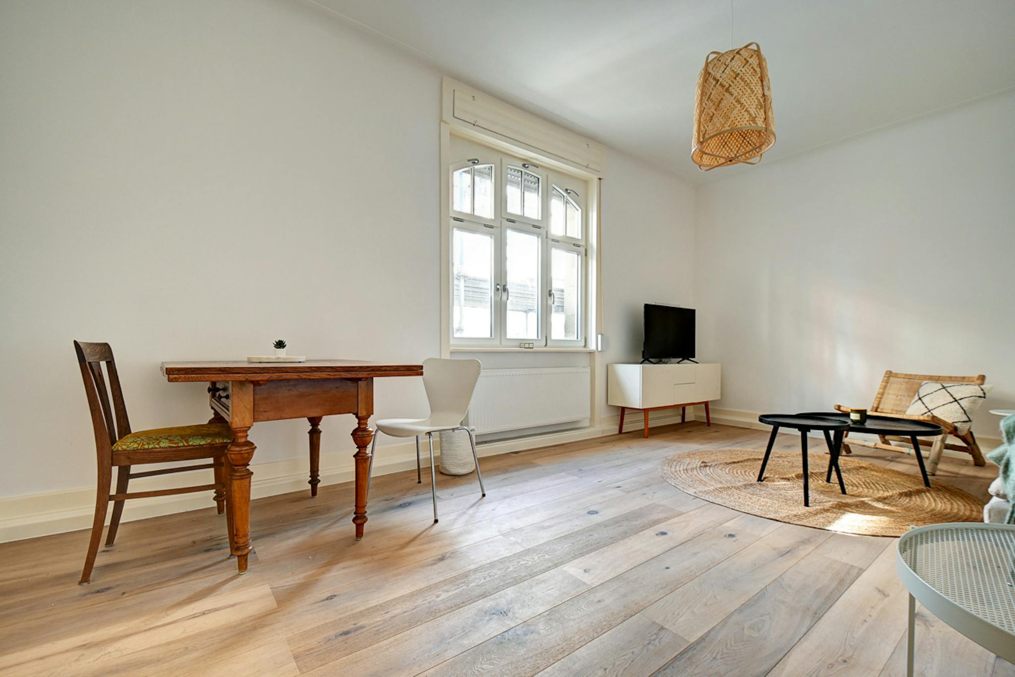 This nicely furnished apartment has all you need for an amazing stay! Its bedroom offers a double bed (1.60x2m), a desk, and a wardrobe. Its living area comes with a comfortable sofa bed, a Smart TV, and a dining place for four people. Its modern fitted kitchen has a dishwasher, a kettle, and a coffeemaker as well as plenty of kitchen inventory. Its high-quality bright bathroom is equipped with a walk-in shower. Towels are available.