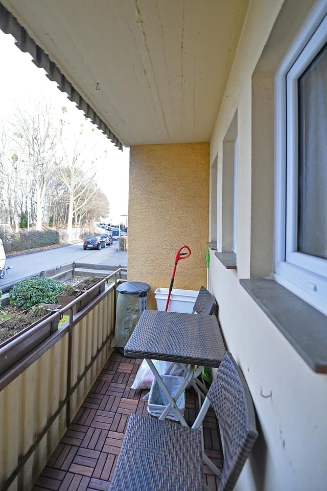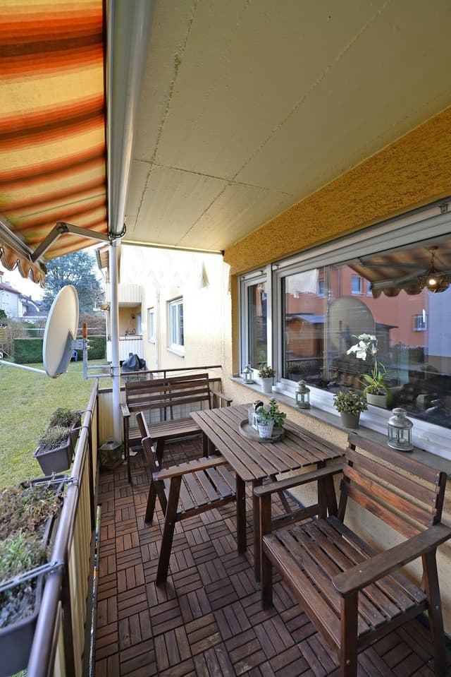 Der südliche grosse Balkon, lädt zum gelegentlichen Kaffeegenuss oder abendlichen Schluck Wein ein.
