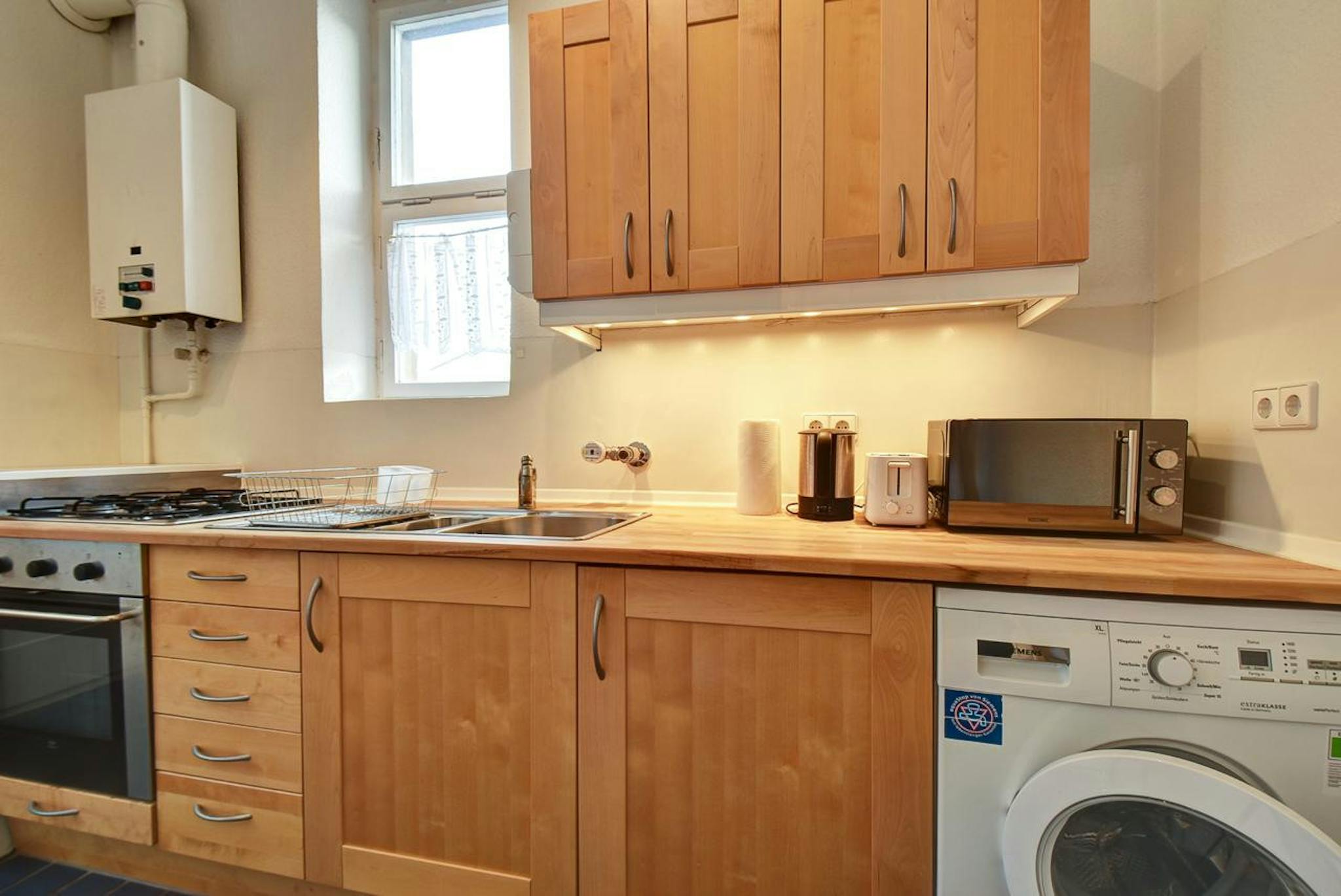 Die Wohnung verfügt über eine vollausgestatteter Einbauküche, samt Nespresso-Maschine, Spülmaschine, Kühl-Gefrierschrank ist bis hin zum Geschirr, Bettwäsche und Kleiderbügeln- alles ist vollmöbliert und bereit für Ihren Einzug - einfach mit dem Koffer ankommen & wohlfühlen.