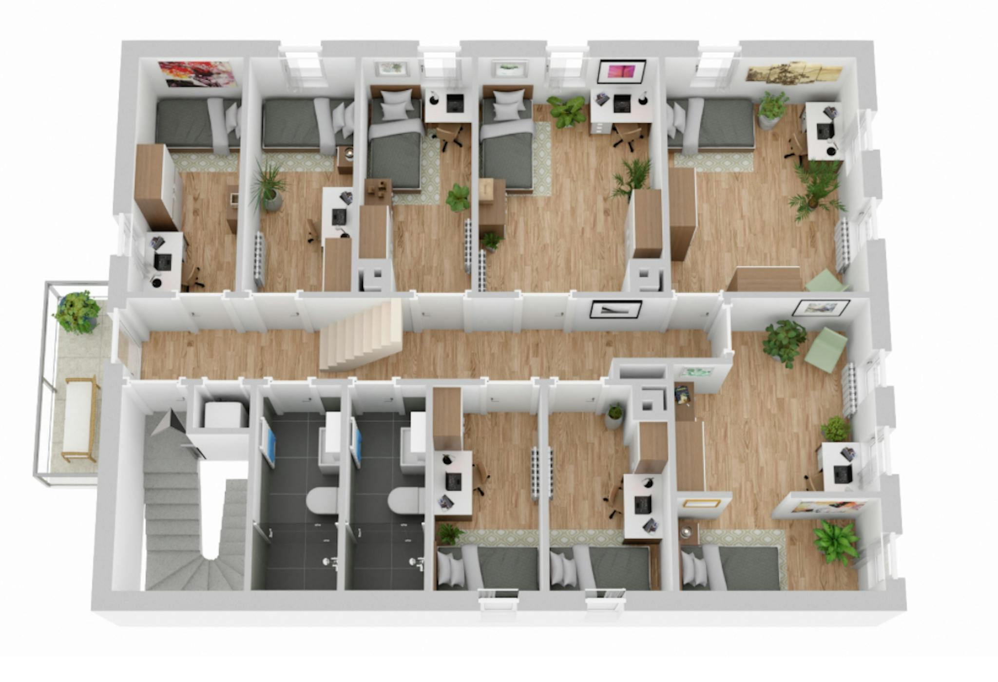 Two modern bathrooms provide the necessary comfort and enough space for all residents.