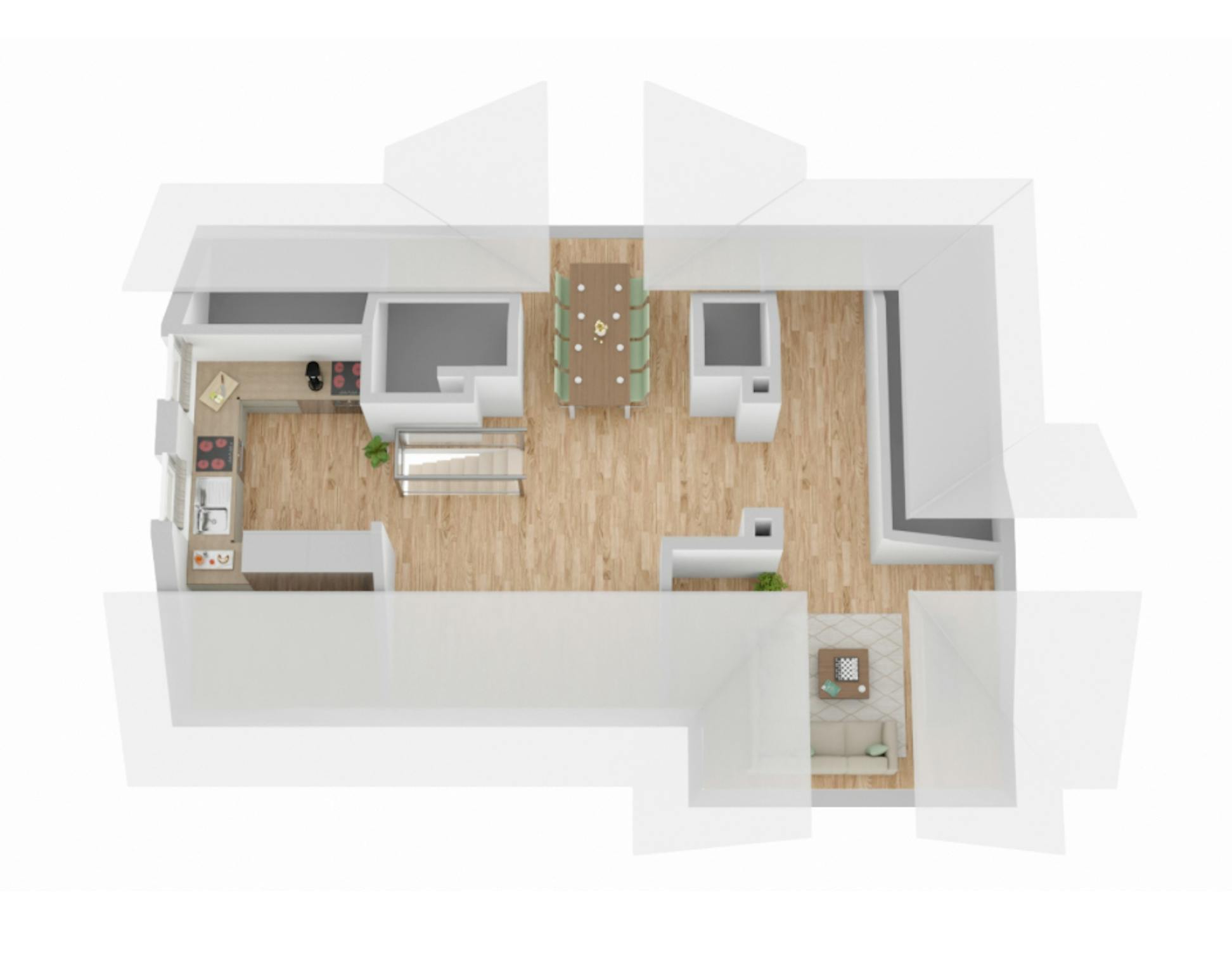The cozy living room provides additional space to play console games together, watch movies, or enjoy the next World Cup or European Championship.