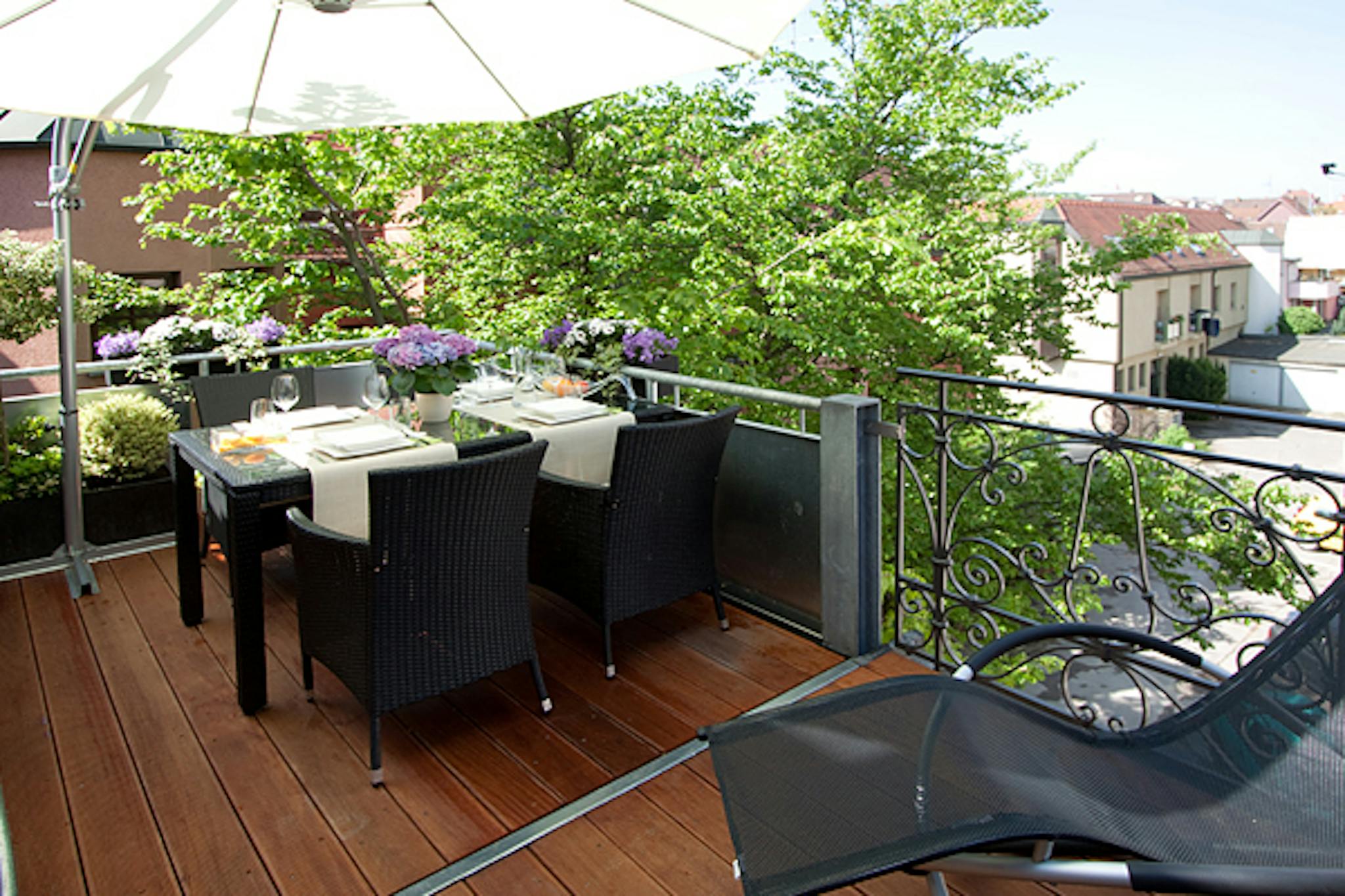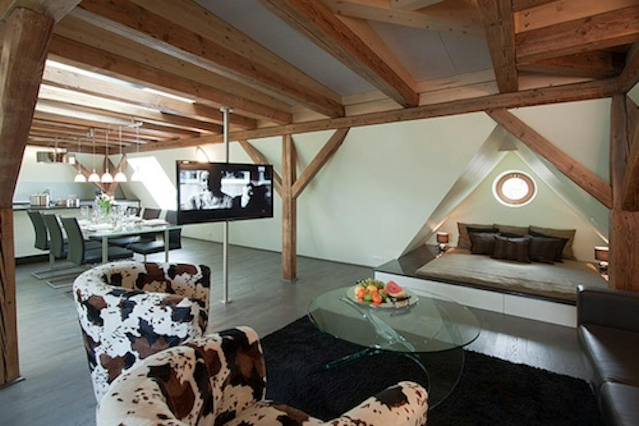 Non-SmokingNot allowedDieses traumhafte Maisonette-Apartment im Design Apartment Haus liegt in Stuttgart-Zuffenhausen. Die Jugendstil-Villa wurde aufwändig und detailgetreu restauriert. Die neun Design Apartments sind modern und exklusiv ausgestattet. Zur Ausstattung gehören Ledermöbel, eine komplett ausgestatte Küche mit Ceran-Induktionskochfeld, Backofen, Microwelle, Kühlschrank mit Gefrierfach, Wasserkocher, Kaffeemaschine etc., 360-Grad drehbarer Flachbild-Fernseher im Wohnzimmer, zusätzlicher Flat TV im Schlafzimmer, große Dachterrasse, Loungeecke, kostenfreies Internet und alles was man für einen komfortablen Aufenthalt benötigt.