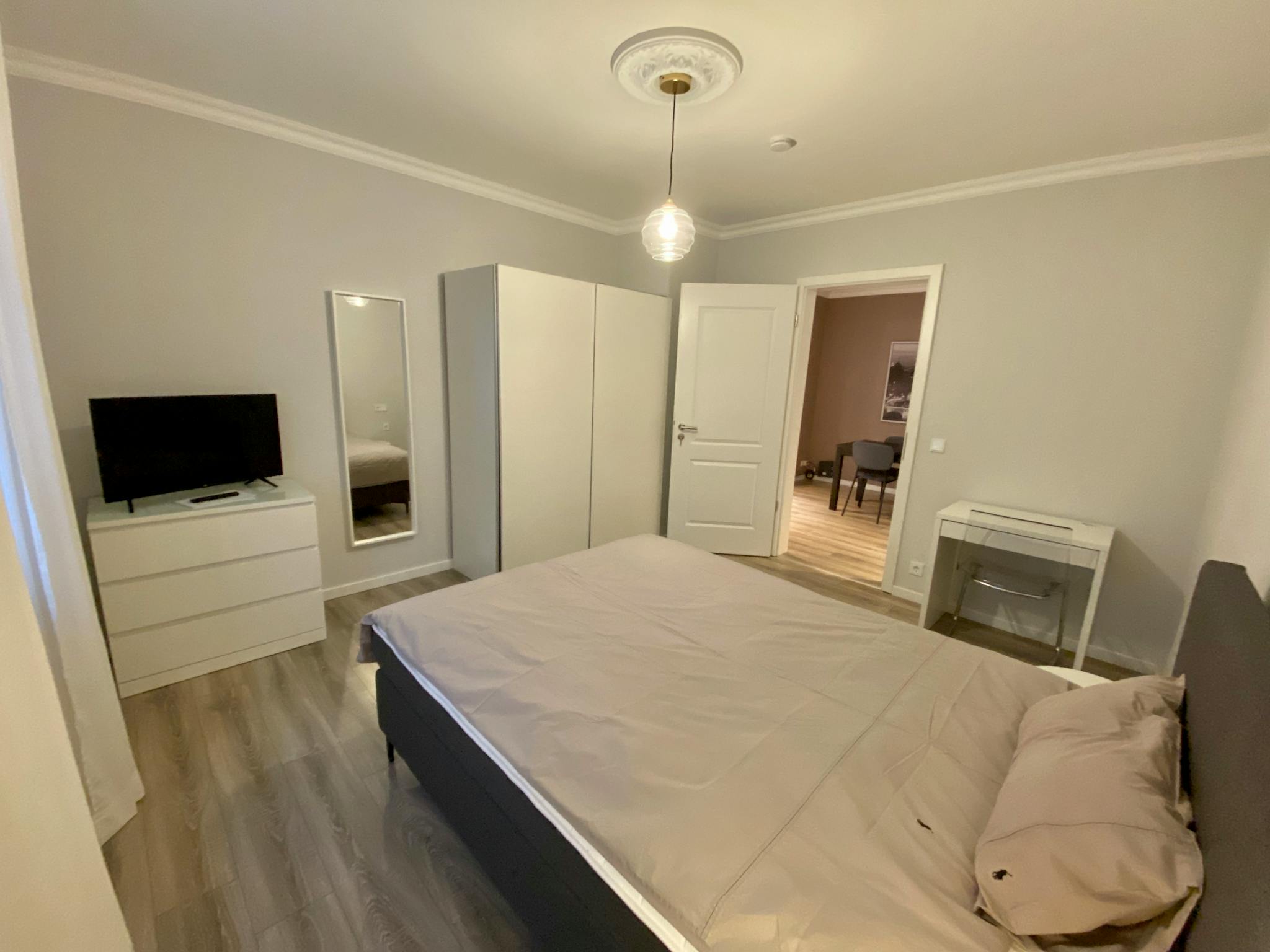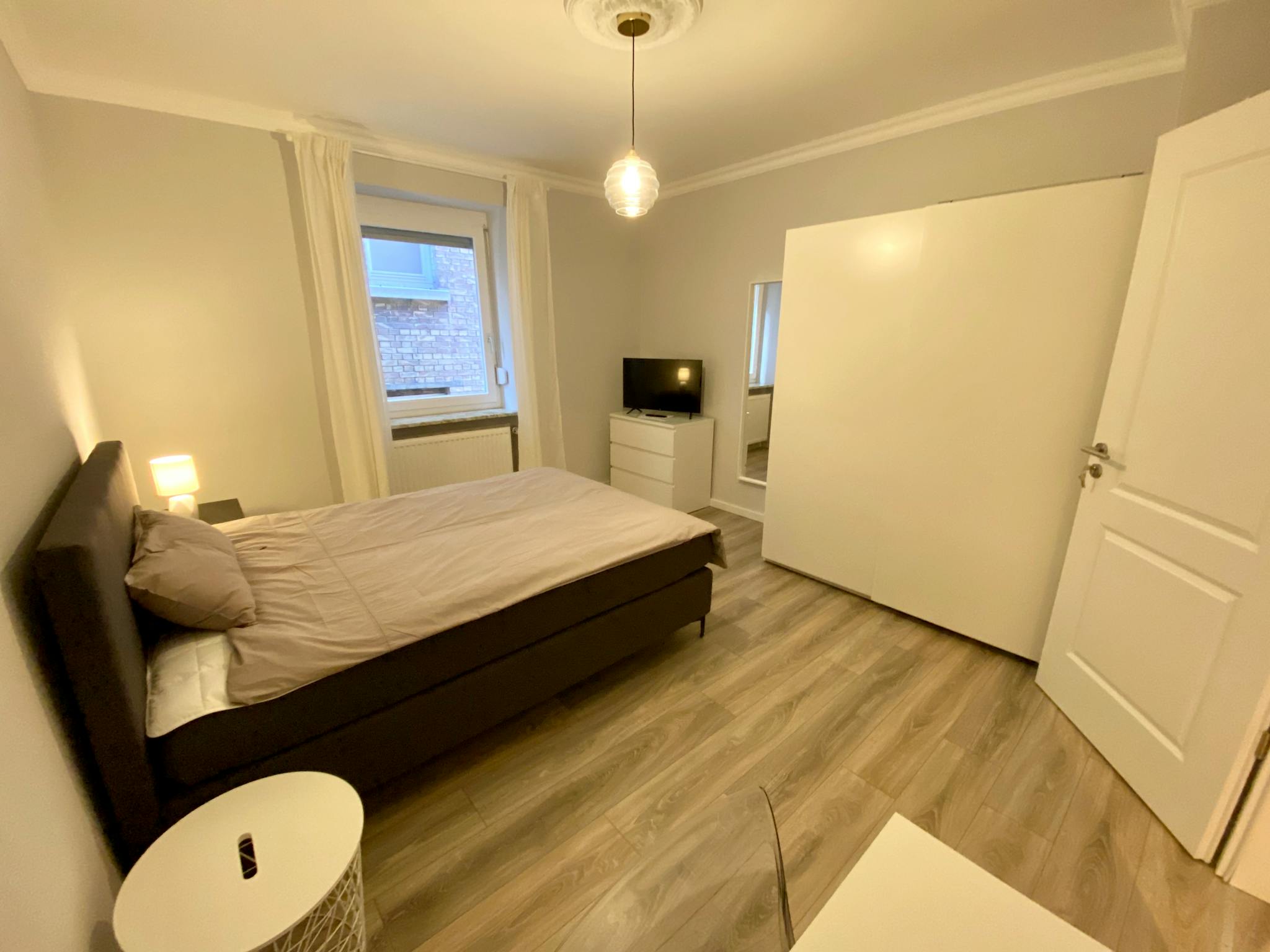 The 14sqm room is in an 86sqm beautiful, newly renovated old building. The room is fully furnished (one box spring bed 140x200, a duvet 155x200, a duvet 135x200, bedclothes and towels, curtains, an armchair, a closet, and a chest of drawers to store all your belongings. As well as a desk, a desk chair, and a Smart TV) and the room invites you to study, work, relax, unwind ... just live.