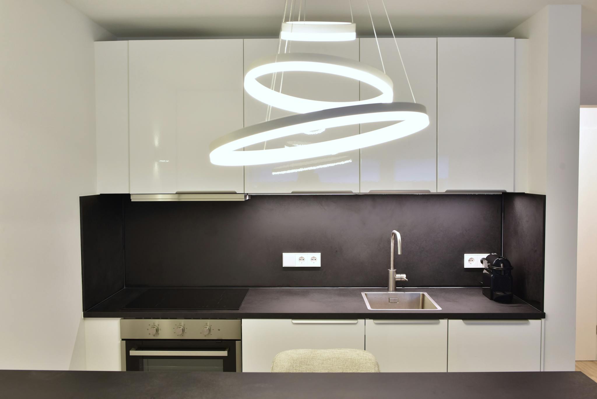 • Modern kitchen: oven, microwave, induction hob, dishwasher, washing machine