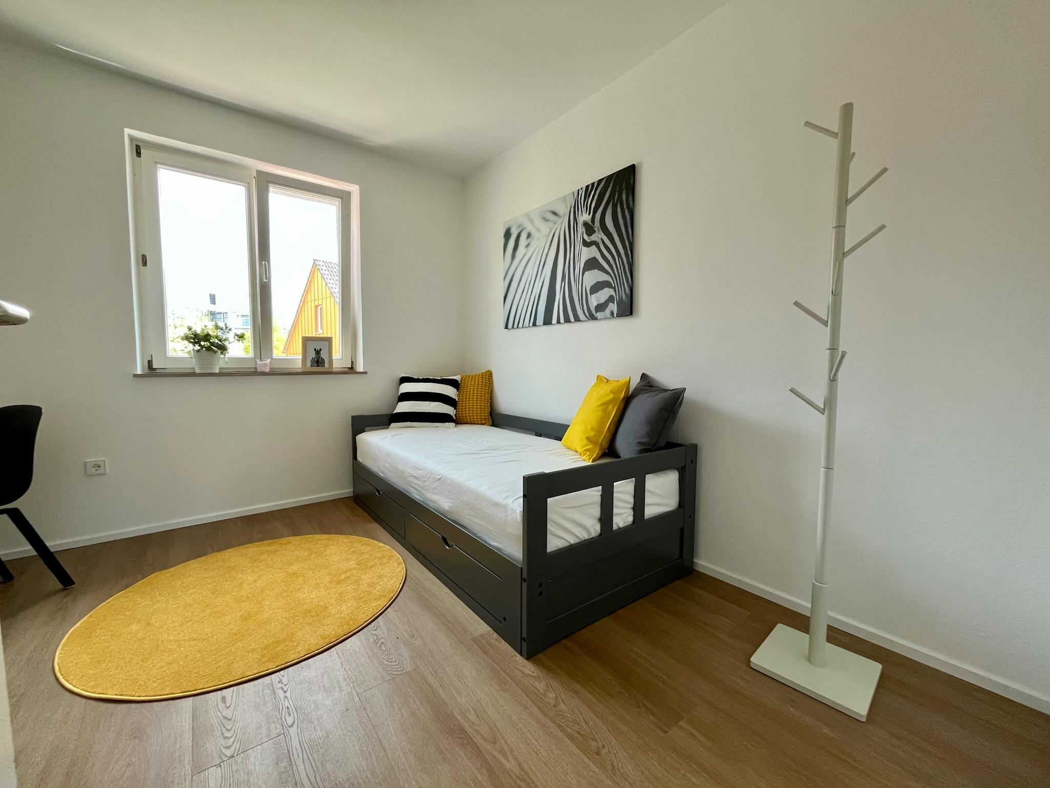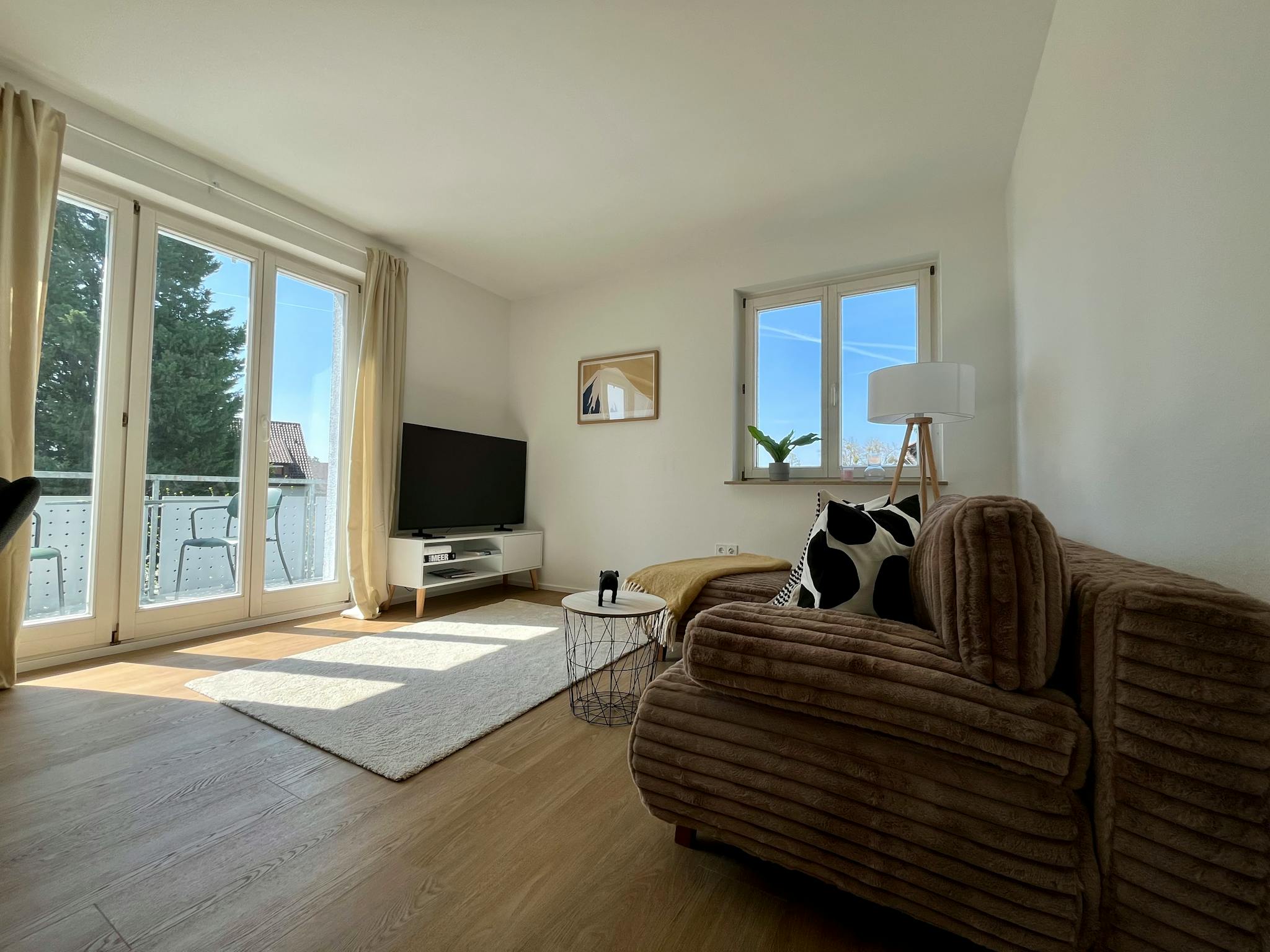 Non-SmokingNot allowedThe modernly furnished 3-room apartment is located on the first floor of a well-maintained multi-family building and features a balcony as well as a separate basement storage unit.