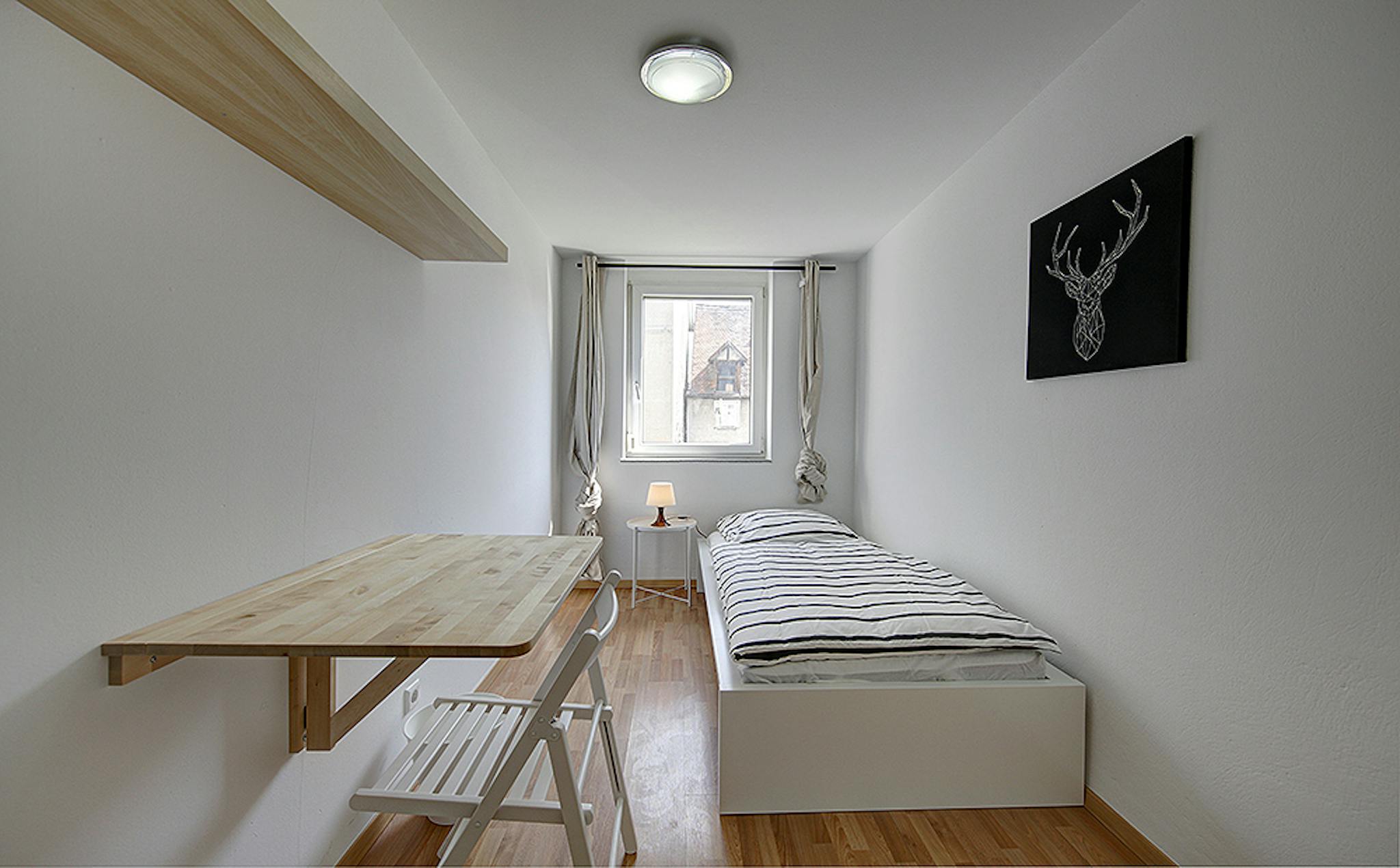 Our flats fulfil all your daily living requirements. Every flat comes readily equipped with a kitchen, including refrigerator, cooking equipment and dishes. Flats also include a washing machine and Wi-Fi Internet. Each room is fully furnished and offers a comfortable bed with fresh linen and a workspace. The area provides you with several shopping opportunities and excellent connections to public transport.