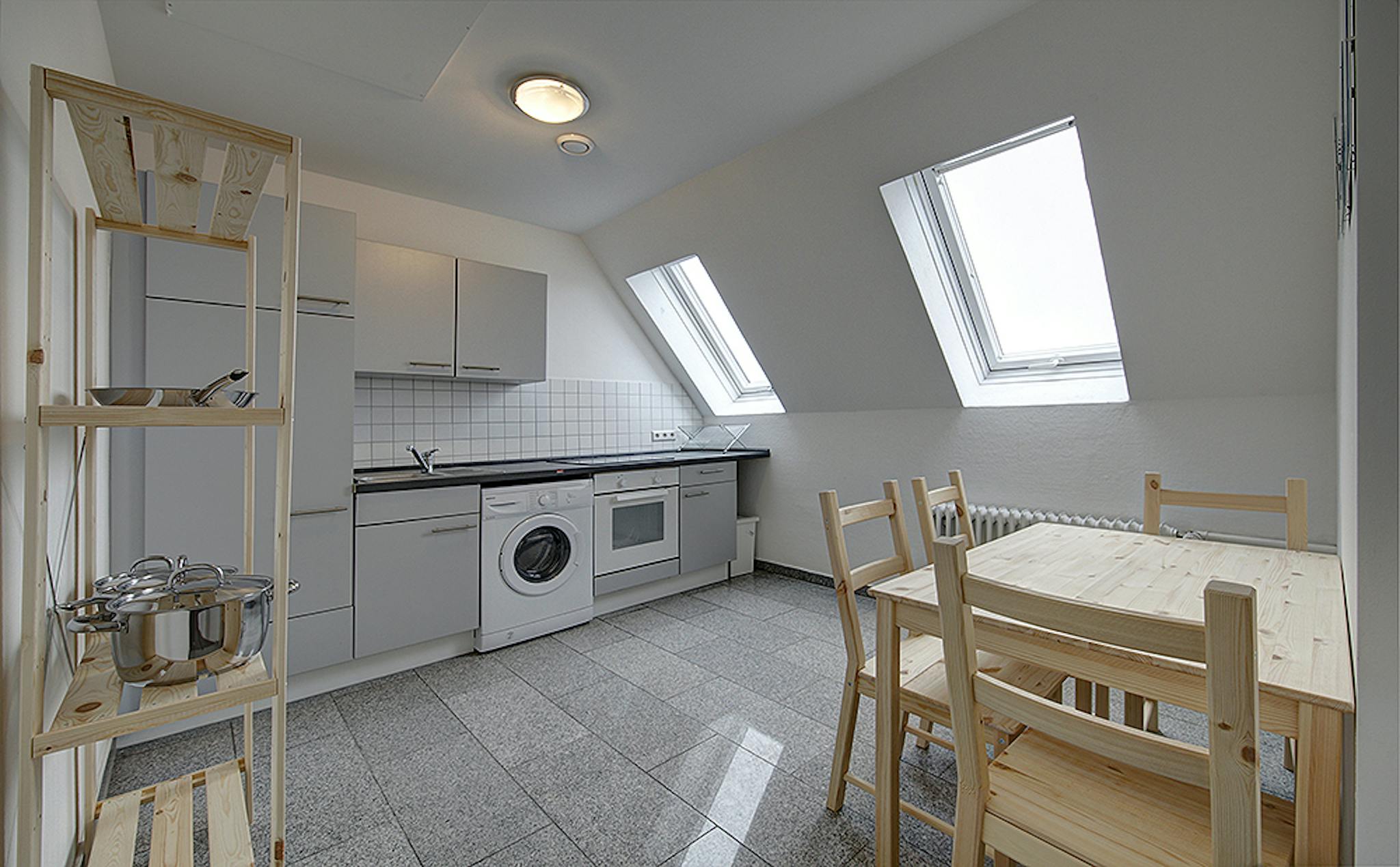 Our flats fulfil all your daily living requirements. Every flat comes readily equipped with a kitchen, including refrigerator, cooking equipment and dishes. Flats also include a washing machine and Wi-Fi Internet. Each room is fully furnished and offers a comfortable bed with fresh linen and a workspace. The area provides you with several shopping opportunities and excellent connections to public transport.