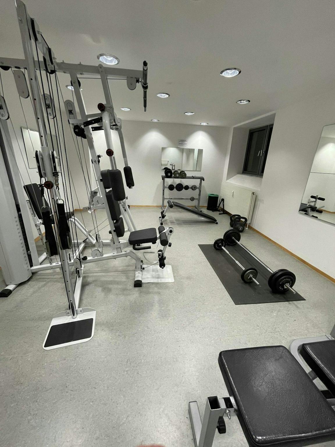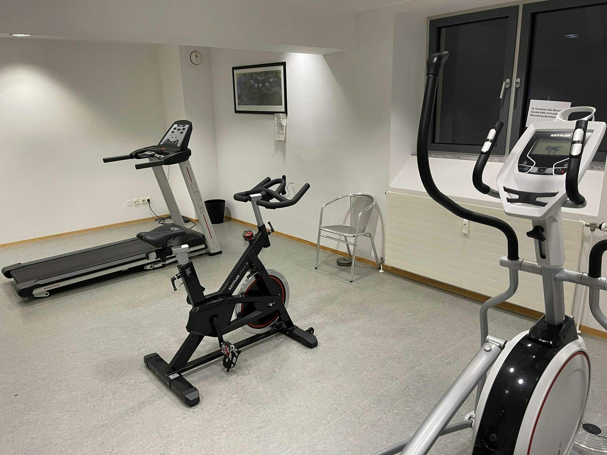 You have a private gym i.e. 2x rooms (1x Room: Bicycle, Stepper, running equipment. 1x: Room: Weights) and a receptionist which is receiving and locking your packages ordered at Amazon and Zalando.