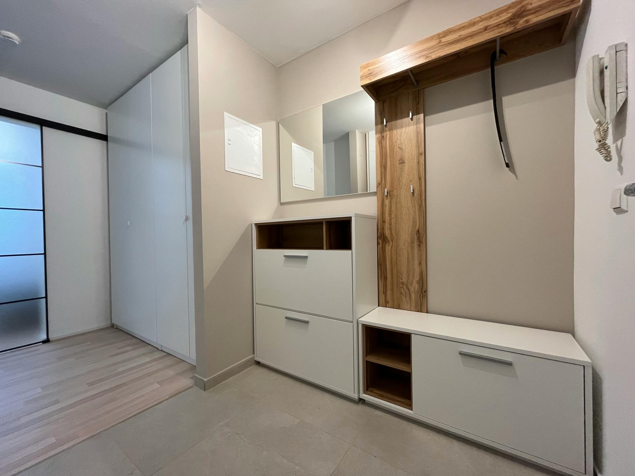 Upon entering the apartment, you are greeted by an inviting entrance area, equipped with a large wardrobe including shoe cabinet.