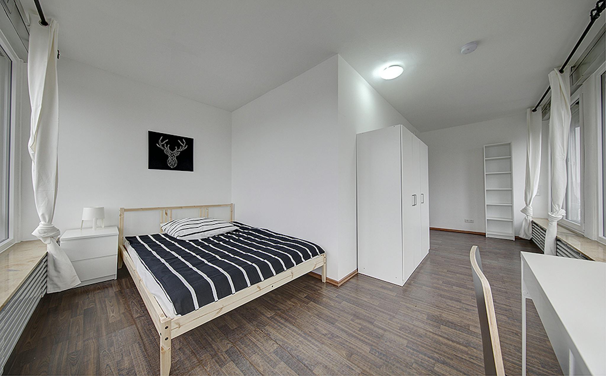 Our flats fulfil all your daily living requirements. Every flat comes readily equipped with a kitchen, including refrigerator, cooking equipment and dishes. Flats also include a washing machine and Wi-Fi Internet. Each room is fully furnished and offers a comfortable bed with fresh linen and a workspace. The area provides you with several shopping opportunities and excellent connections to public transport.