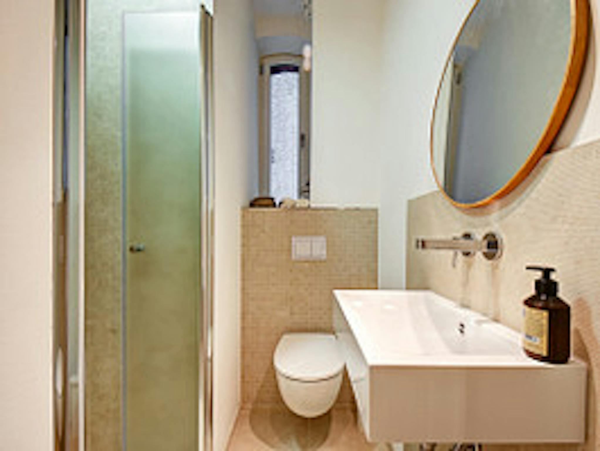 - Badezimmer mit Dusche, Handtuchheizung und Tageslicht