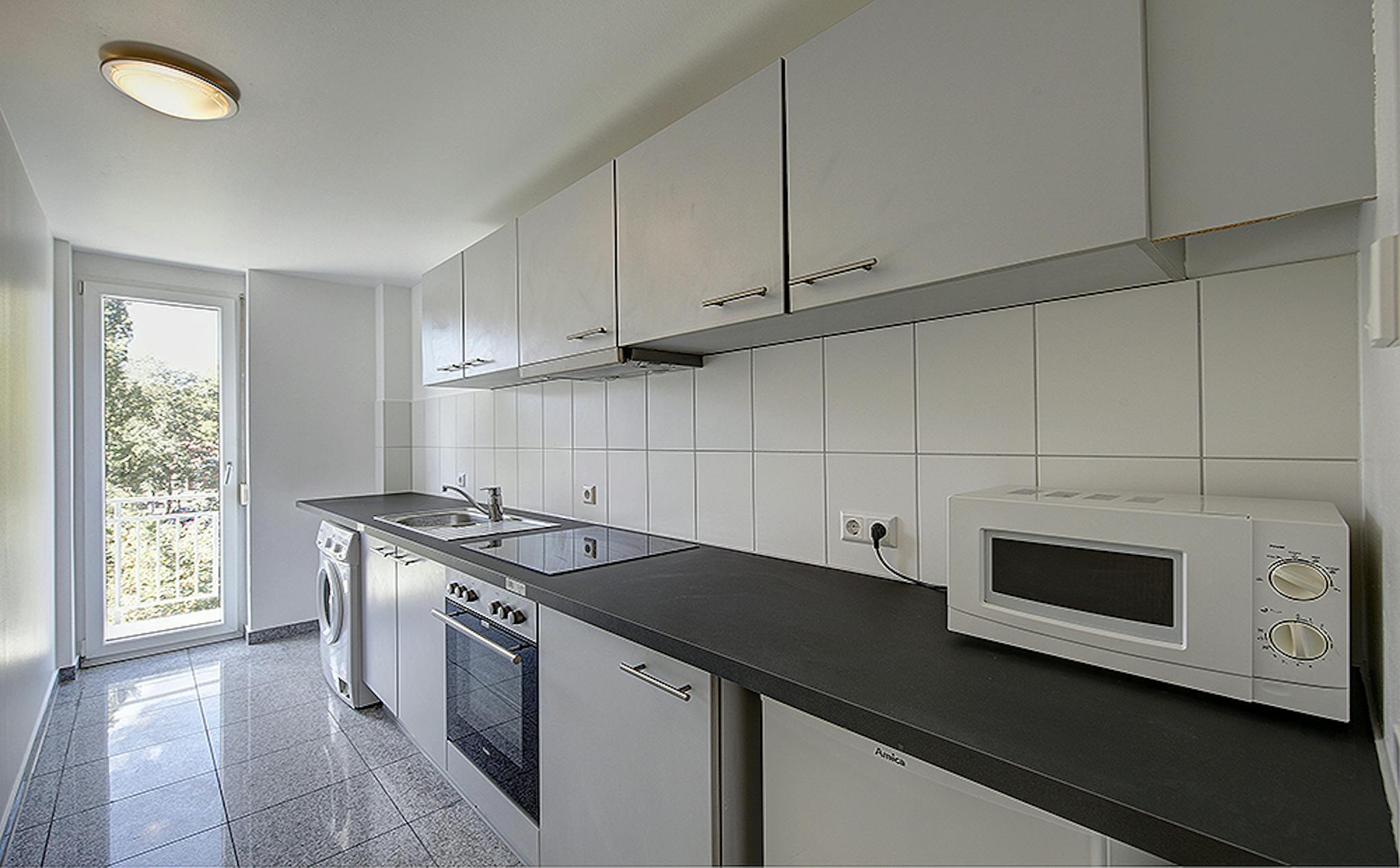 Our flats fulfil all your daily living requirements. Every flat comes readily equipped with a kitchen, including refrigerator, cooking equipment and dishes. Flats also include a washing machine and Wi-Fi Internet. Each room is fully furnished and offers a comfortable bed with fresh linen and a workspace. The area provides you with several shopping opportunities and excellent connections to public transport.