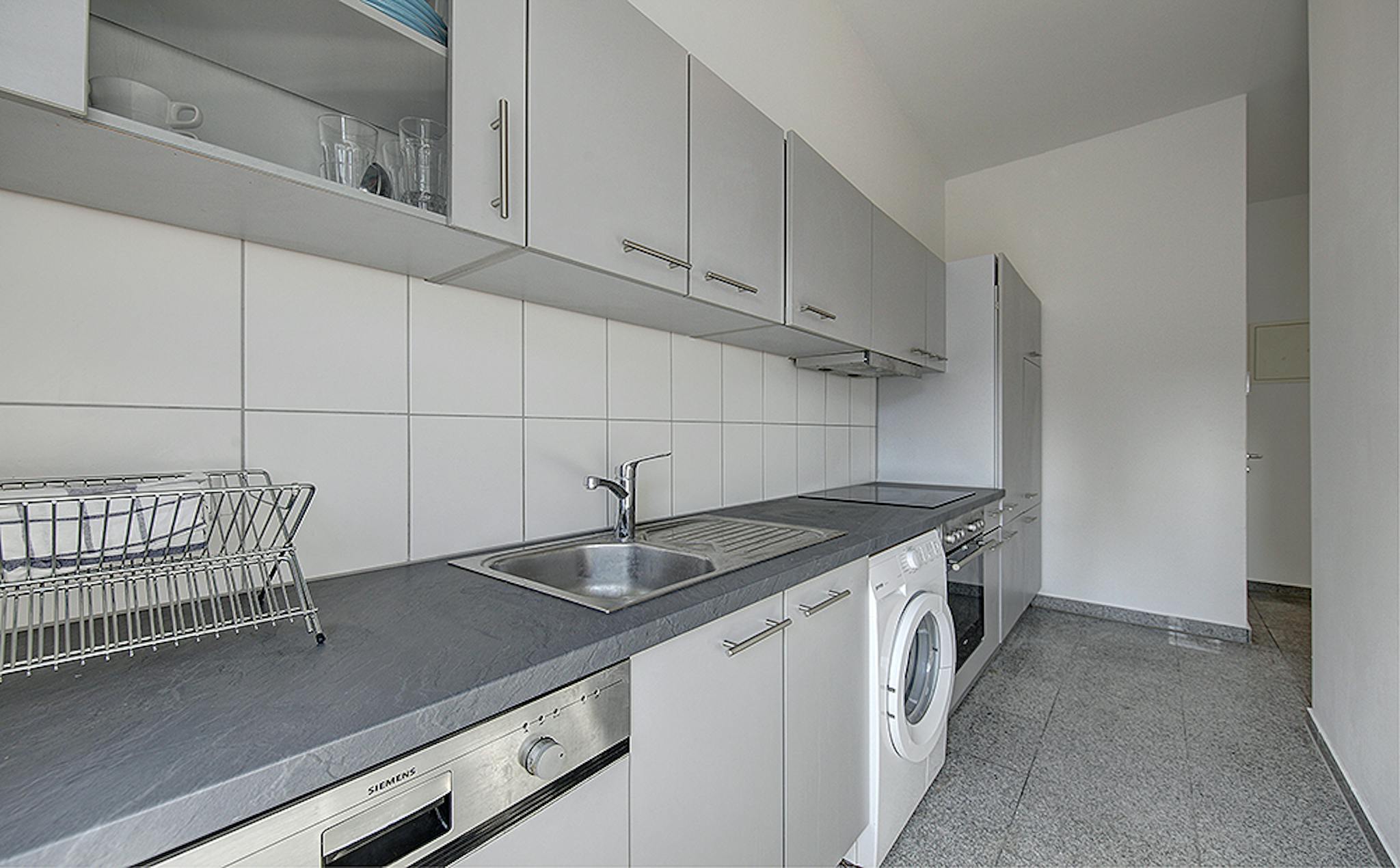 ROOM Our flats fulfil all your daily living requirements. Every flat comes readily equipped with a kitchen, including refrigerator, cooking equipment and dishes. Flats also include a washing machine and Wi-Fi Internet. Each room is fully furnished and offers a comfortable bed with fresh linen and a workspace. The area provides you with several shopping opportunities and excellent connections to public transport.