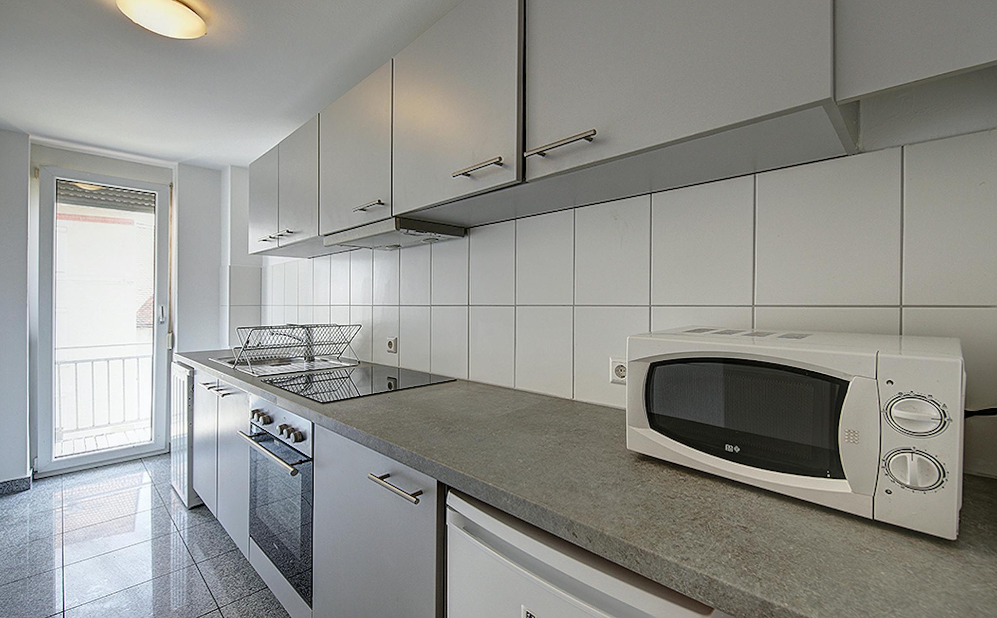 Our flats fulfil all your daily living requirements. Every flat comes readily equipped with a kitchen, including refrigerator, cooking equipment and dishes. Flats also include a washing machine and Wi-Fi Internet. Each room is fully furnished and offers a comfortable bed with fresh linen and a workspace. The area provides you with several shopping opportunities and excellent connections to public transport.