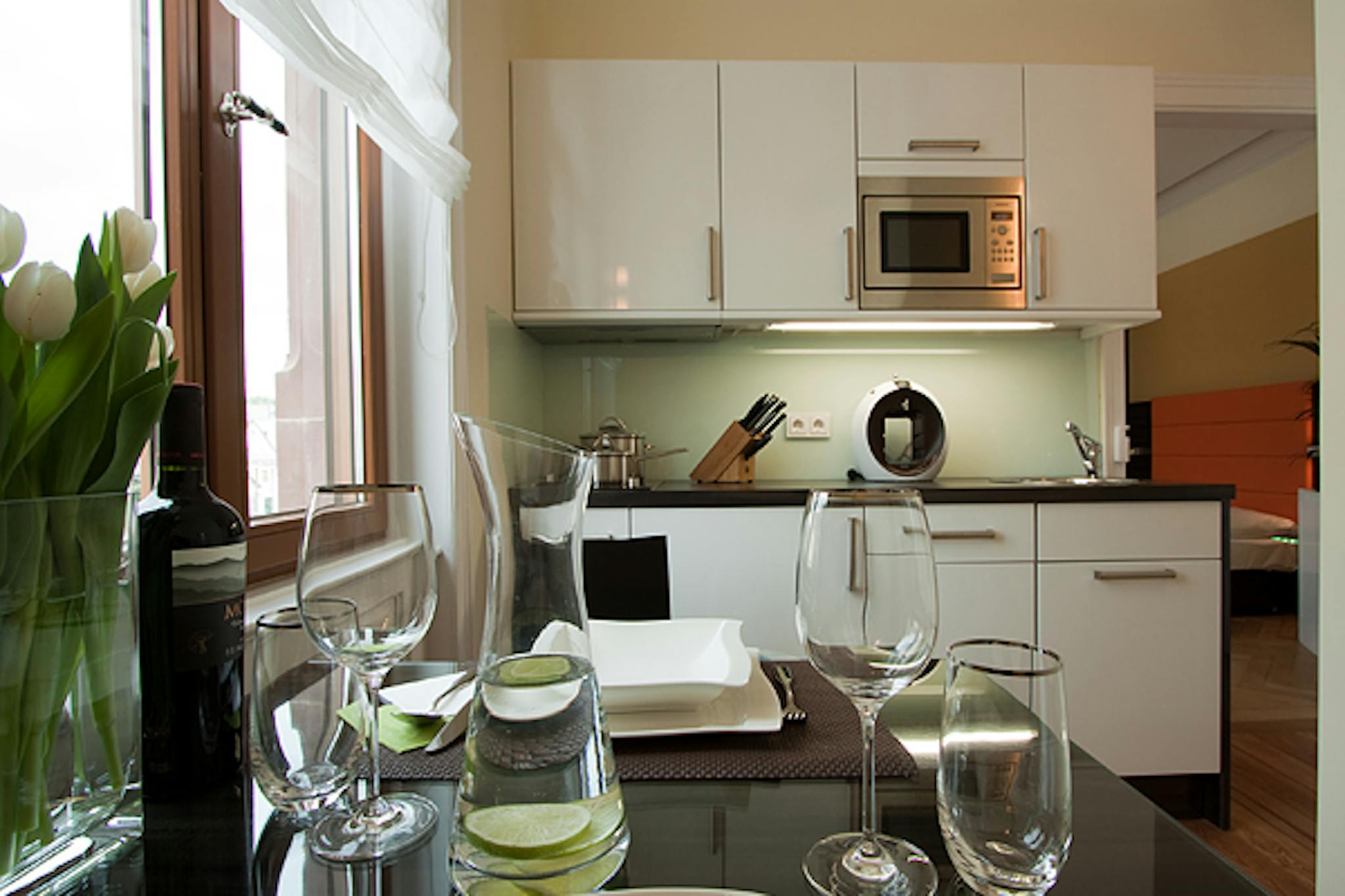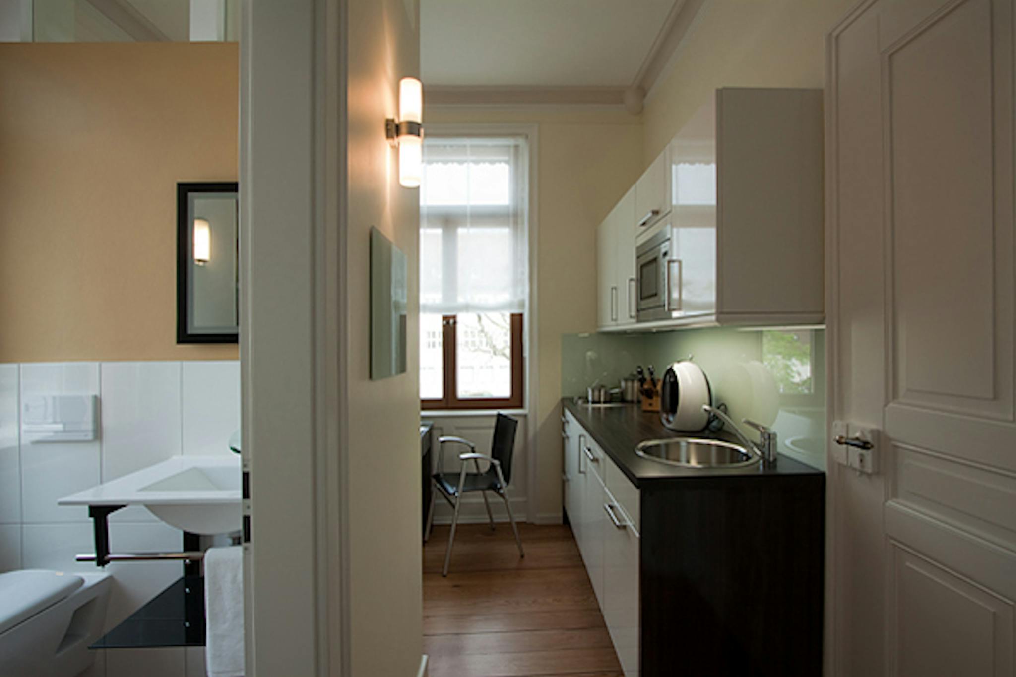 Non-SmokingNot allowedDieses wunderschöne Apartment im Design Apartment Haus liegt in Stuttgart-Zuffenhausen. Die Jugendstil-Villa wurde aufwändig und detailgetreu restauriert. Die neun Design Apartments in Stuttgart sind modern und exklusiv ausgestattet. Zur Ausstattung gehören Ledermöbel, komplett ausgestatte Küchen mit Cerankochfeld, Microwelle, Spülmaschine, Kühslschrank mit Gefrierfach, Wasserkocher, Kaffeemaschine etc., Flachbild-Fernseher in Schlaf- und Wohnzimmer, kostenfreies Internet und alles was man für einen komfortablen Aufenthalt benötigt. Neben dimmbaren Lichtern ist das Apartment zudem mit elektrischen Rollläden an allen Fernstern ausgestattet.