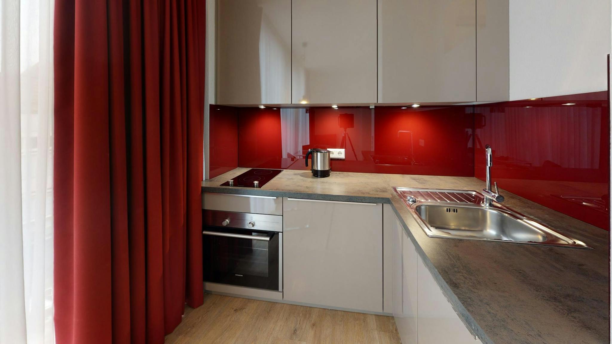 Non-SmokingNot allowedDieses möblierte Apartment in Stuttgart-Zuffenhausen liegt in einem erst kürzlich neu eröffneten Apartmenthaus. Es verfügt über eine komplett ausgestattete Küche, High Speed Internet und hochwertige Boxspringbetten aus Frankreich. Der Schlafbereich ist mit einer Glasschiebetüre vom Wohnraum abgetrennt. Waschmaschinen und Trockner stehen im Haus für unsere Gäste zur Verfügung. Mit dem Aufzug gelangt man bequem auf das Stockwerk. Die möblierte Wohnung hat einen kleinen Balkon. Im EG des Hauses befindet sich eine Bäckerei, bei welcher man sich morgens mit frischen Brötchen und Kaffee versorgen kann.