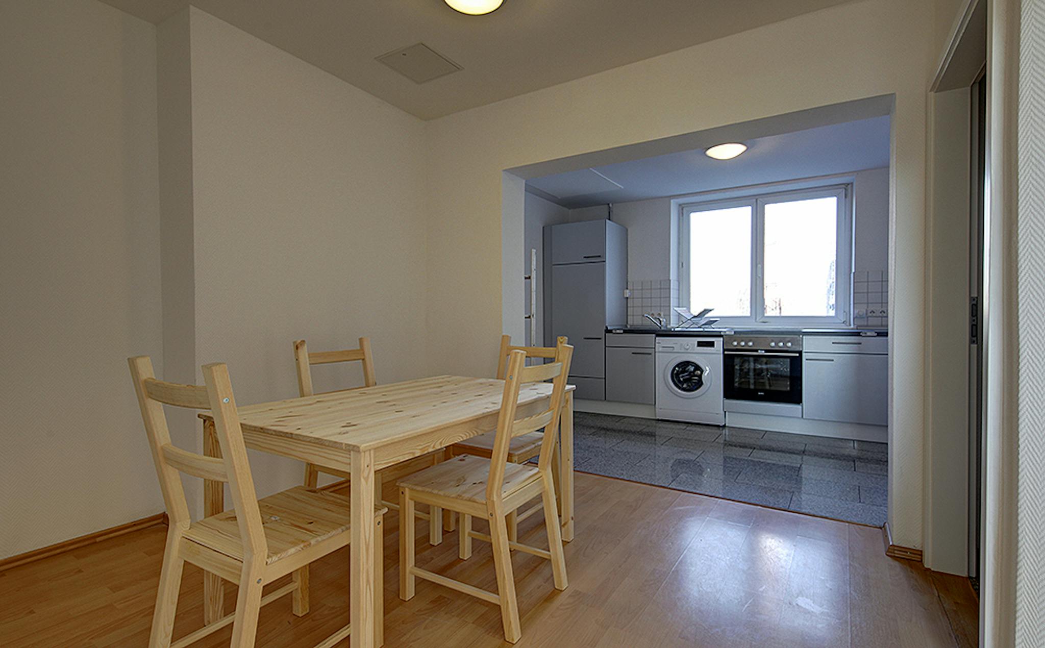 Our flats fulfil all your daily living requirements. Every flat comes readily equipped with a kitchen, including refrigerator, cooking equipment and dishes. Flats also include a washing machine and Wi-Fi Internet. Each room is fully furnished and offers a comfortable bed with fresh linen and a workspace. The area provides you with several shopping opportunities and excellent connections to public transport.