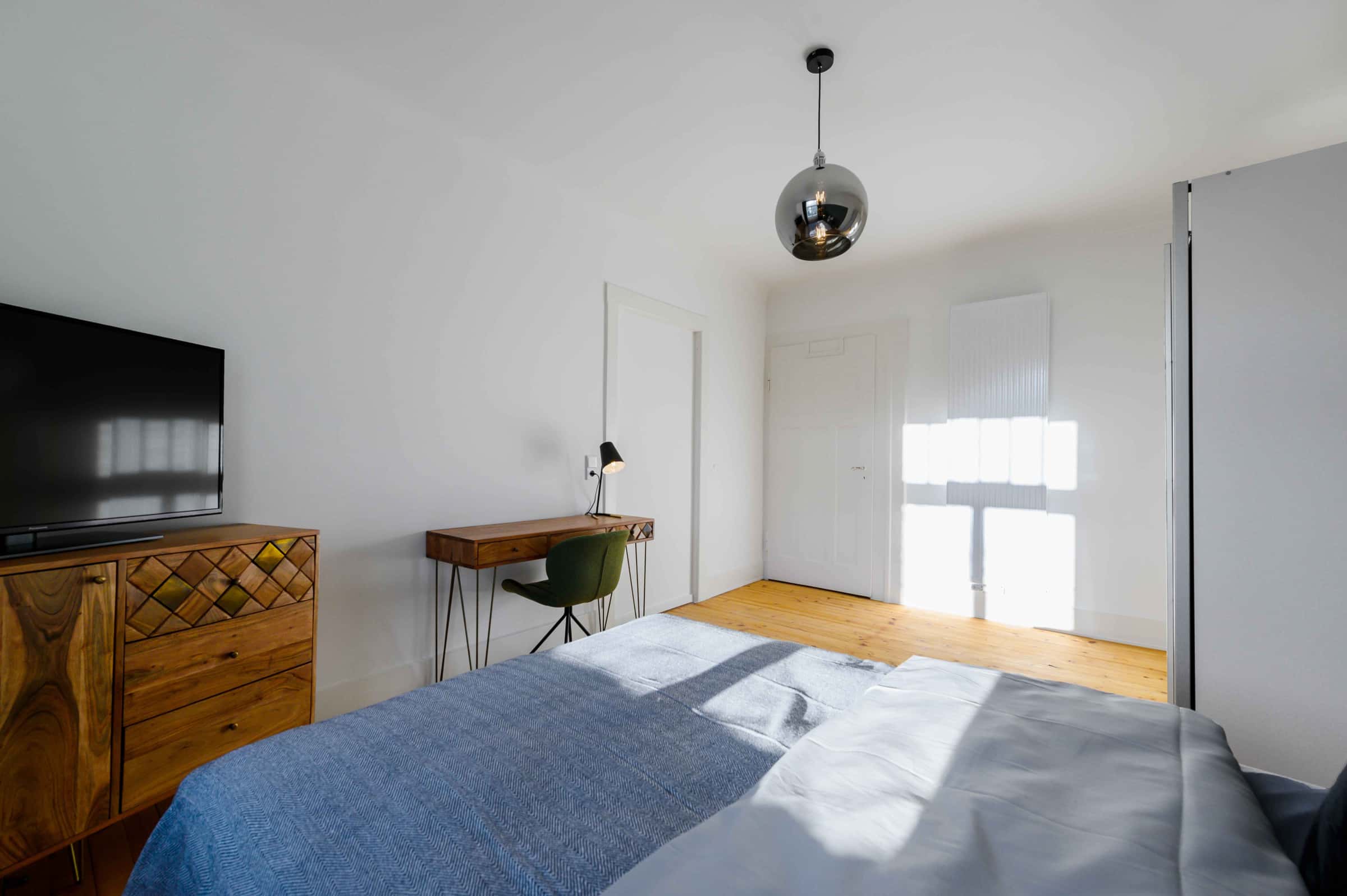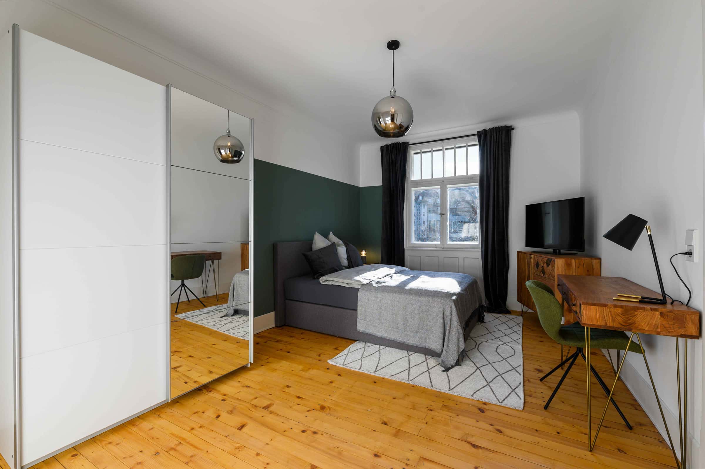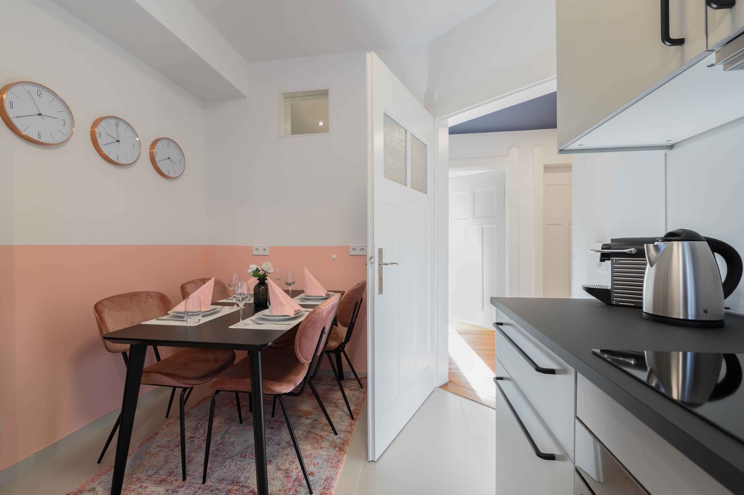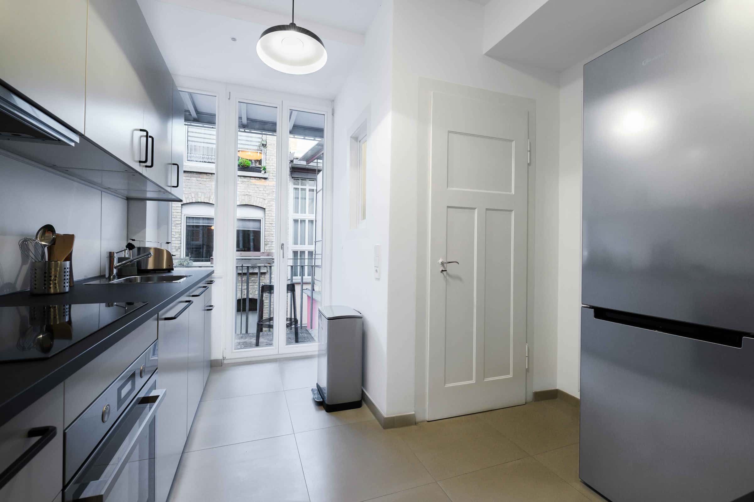 Our flats fulfil all your daily living requirements. Every flat comes readily equipped with a kitchen, including refrigerator, cooking equipment and dishes. Flats also include a washing machine and Wi-Fi Internet. Each room is fully furnished and offers a comfortable bed with fresh linen and a workspace. The area provides you with several shopping opportunities and excellent connections to public transport.