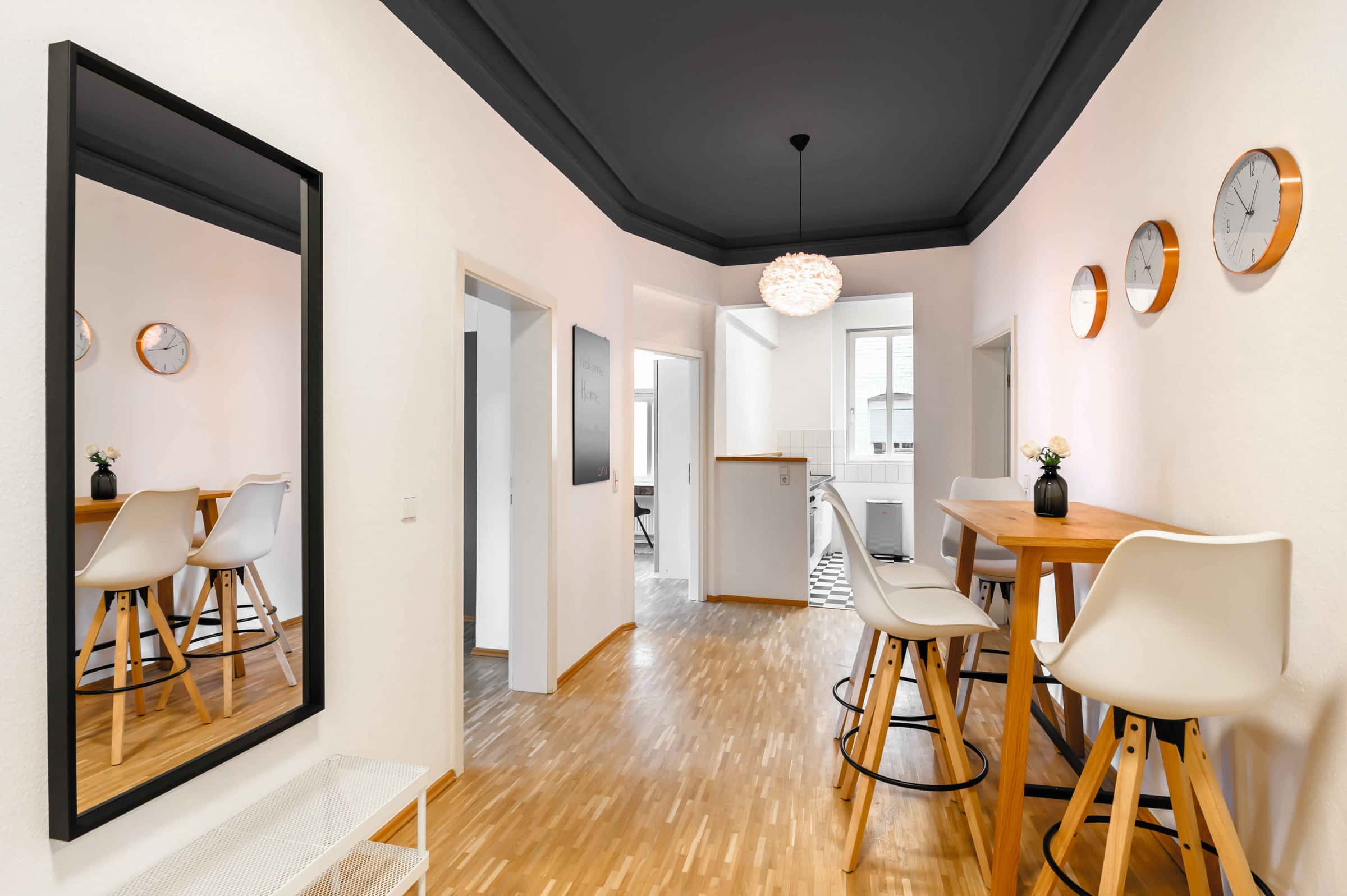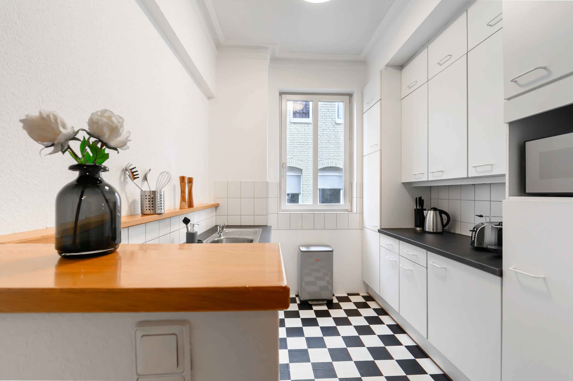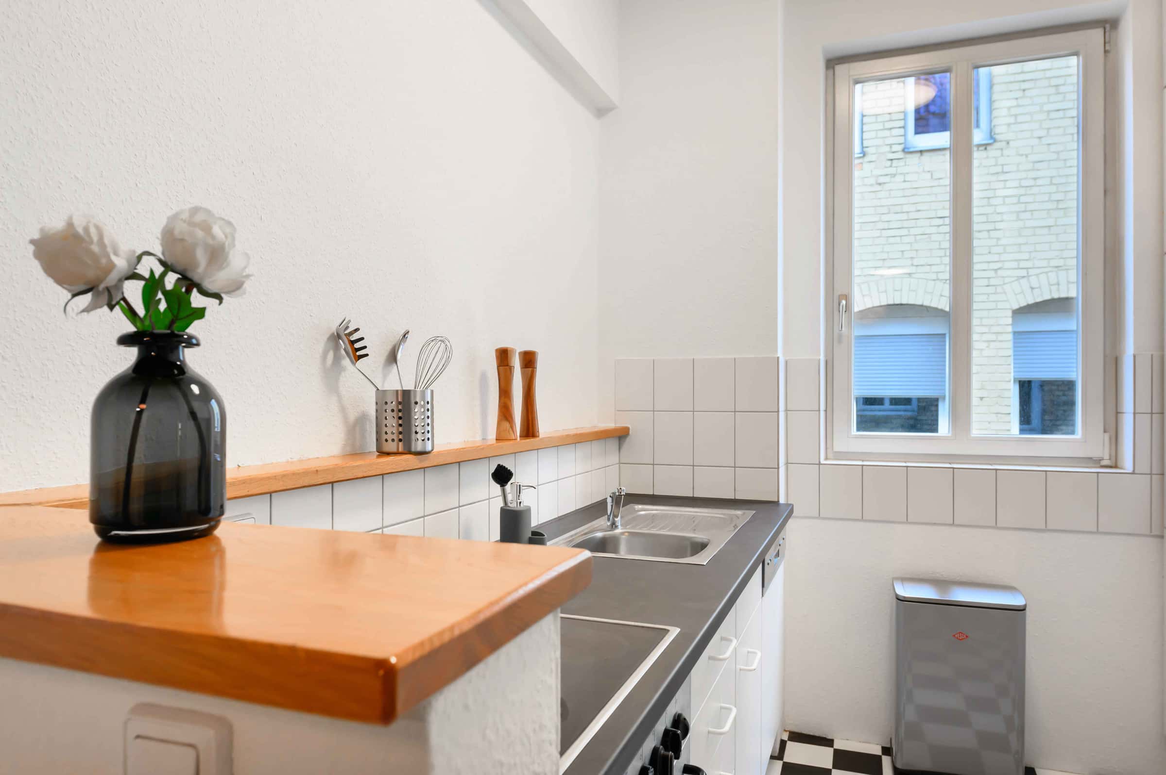 Our flats fulfil all your daily living requirements. Every flat comes readily equipped with a kitchen, including refrigerator, cooking equipment and dishes. Flats also include a washing machine and Wi-Fi Internet. Each room is fully furnished and offers a comfortable bed with fresh linen and a workspace. The area provides you with several shopping opportunities and excellent connections to public transport.