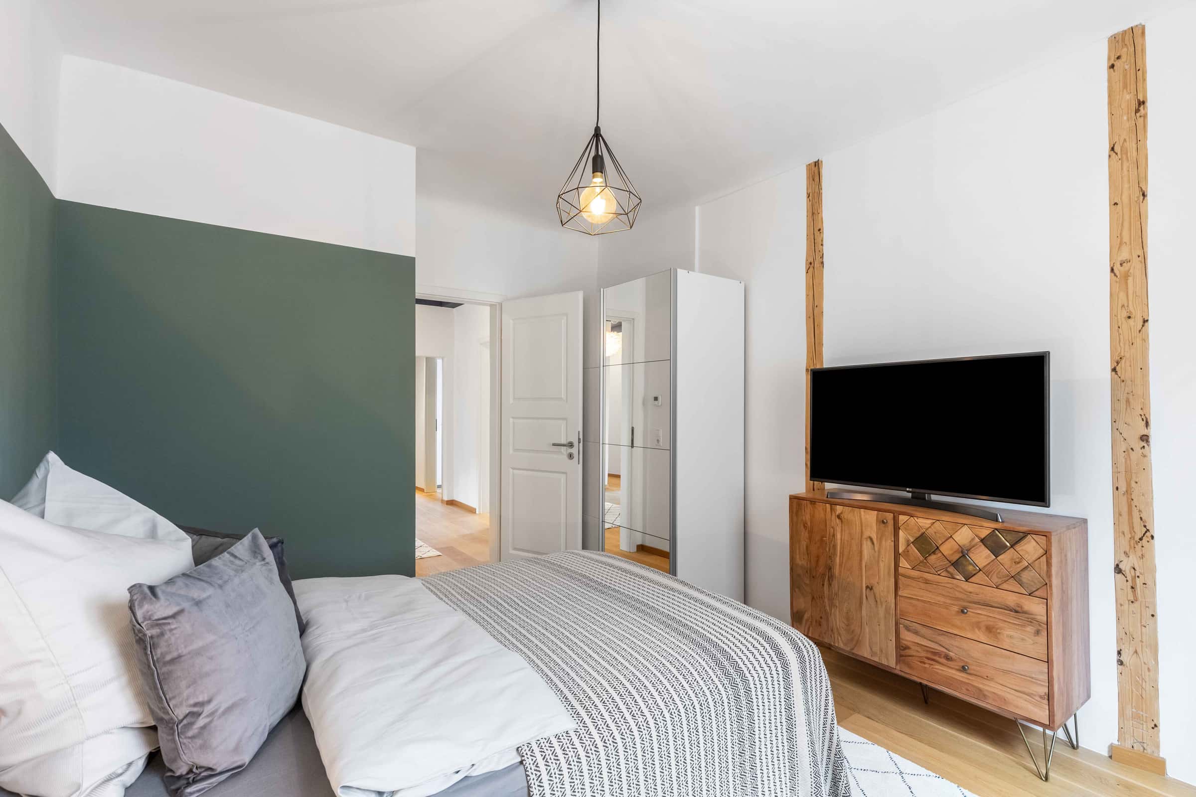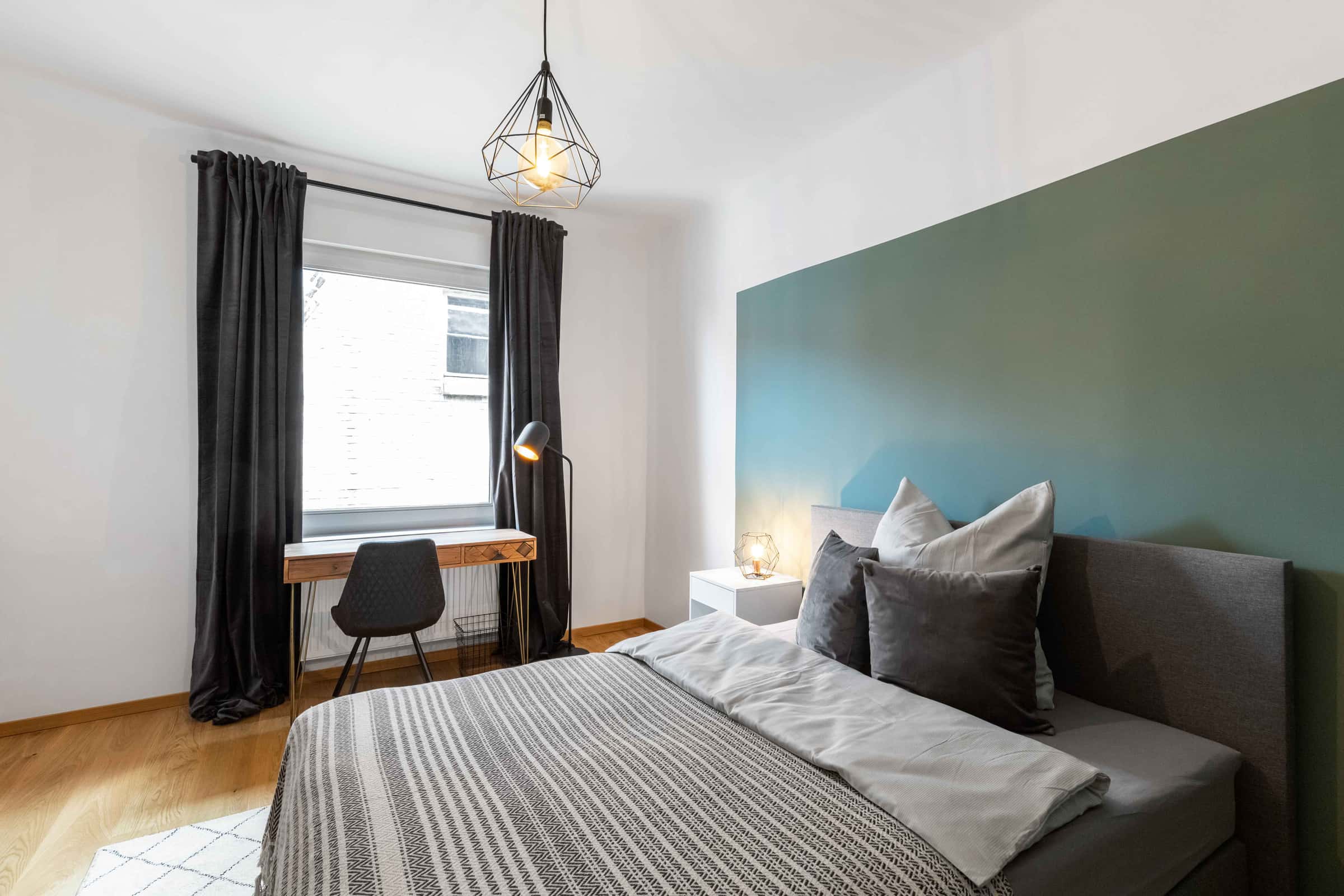 Our flats fulfil all your daily living requirements. Every flat comes readily equipped with a kitchen, including refrigerator, cooking equipment and dishes. Flats also include a washing machine and Wi-Fi Internet. Each room is fully furnished and offers a comfortable bed with fresh linen and a workspace. The area provides you with several shopping opportunities and excellent connections to public transport.