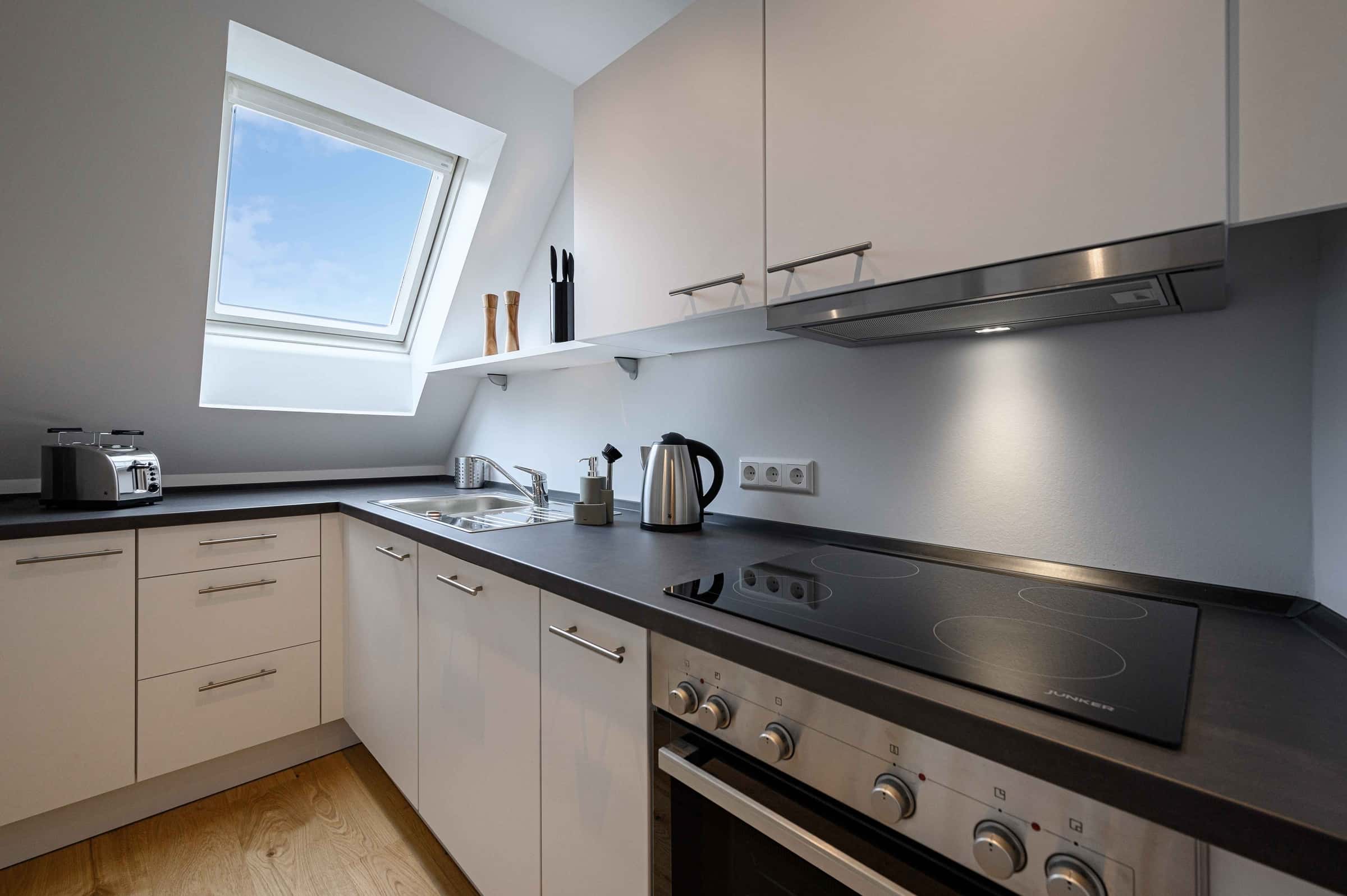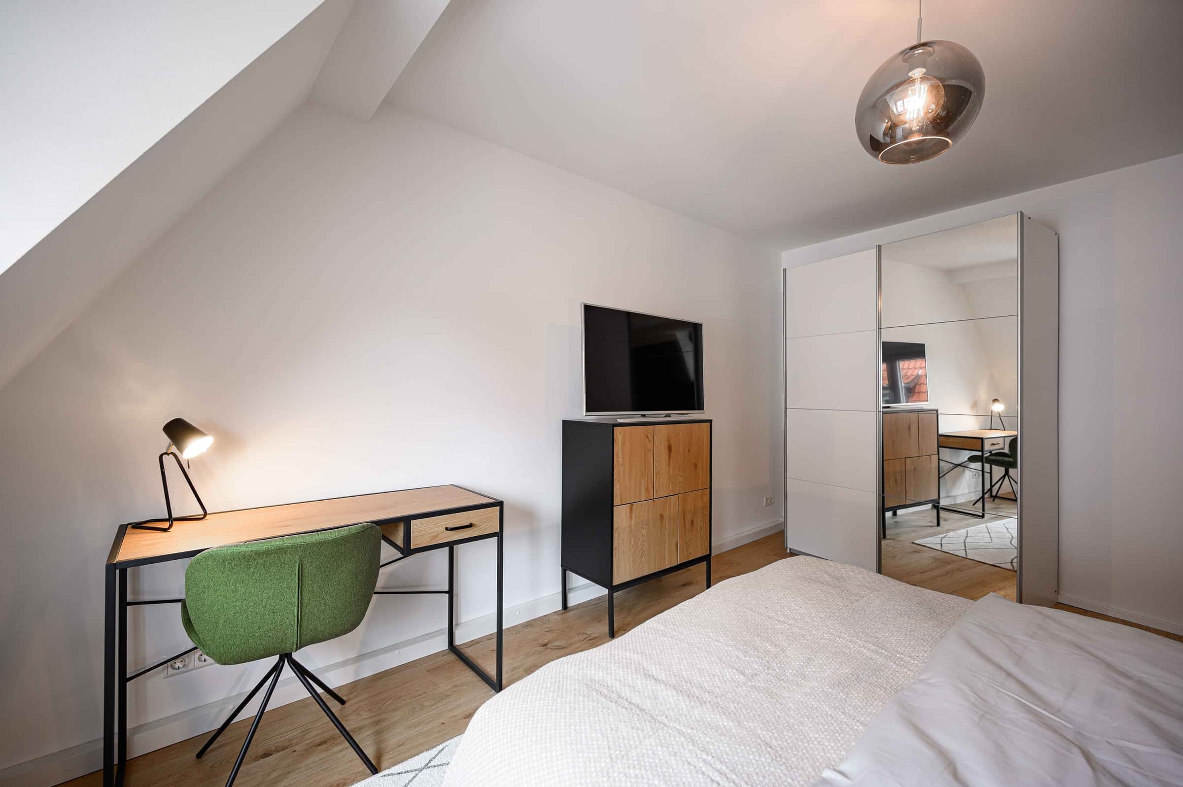 Our flats fulfil all your daily living requirements. Every flat comes readily equipped with a kitchen, including refrigerator, cooking equipment and dishes. Flats also include a washing machine and Wi-Fi Internet. Each room is fully furnished and offers a comfortable bed with fresh linen and a workspace. The area provides you with several shopping opportunities and excellent connections to public transport.