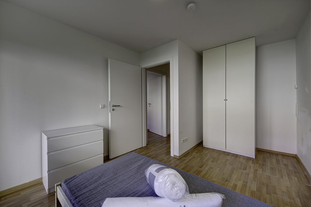 Our flats fulfil all your daily living requirements. Every flat comes readily equipped with a kitchen, including refrigerator, cooking equipment and dishes. Flats also include a washing machine and Wi-Fi Internet. Each room is fully furnished and offers a comfortable bed with fresh linen and a workspace. The area provides you with several shopping opportunities and excellent connections to public transport.