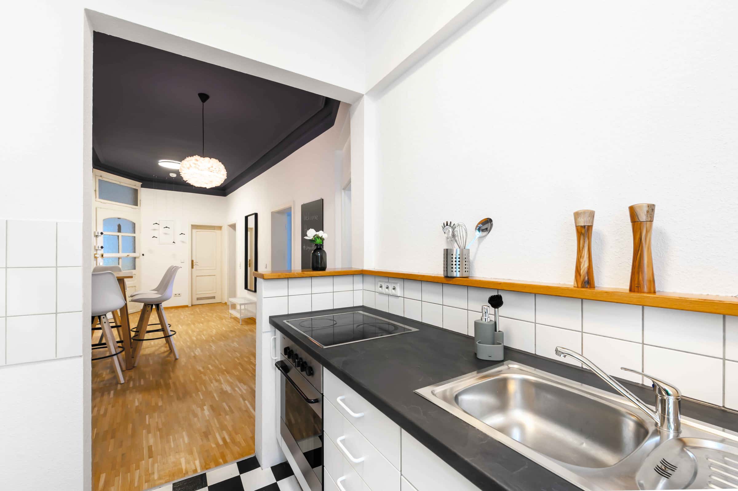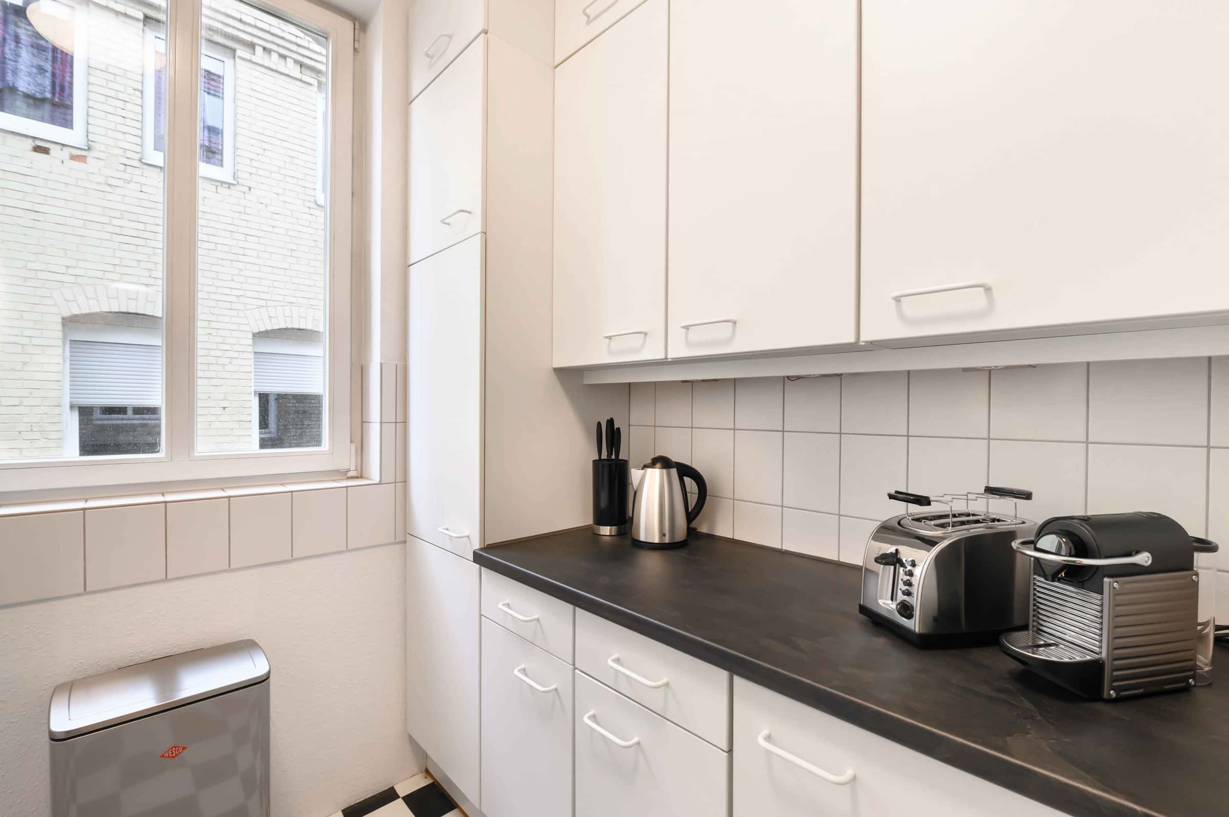 Our flats fulfil all your daily living requirements. Every flat comes readily equipped with a kitchen, including refrigerator, cooking equipment and dishes. Flats also include a washing machine and Wi-Fi Internet. Each room is fully furnished and offers a comfortable bed with fresh linen and a workspace. The area provides you with several shopping opportunities and excellent connections to public transport.