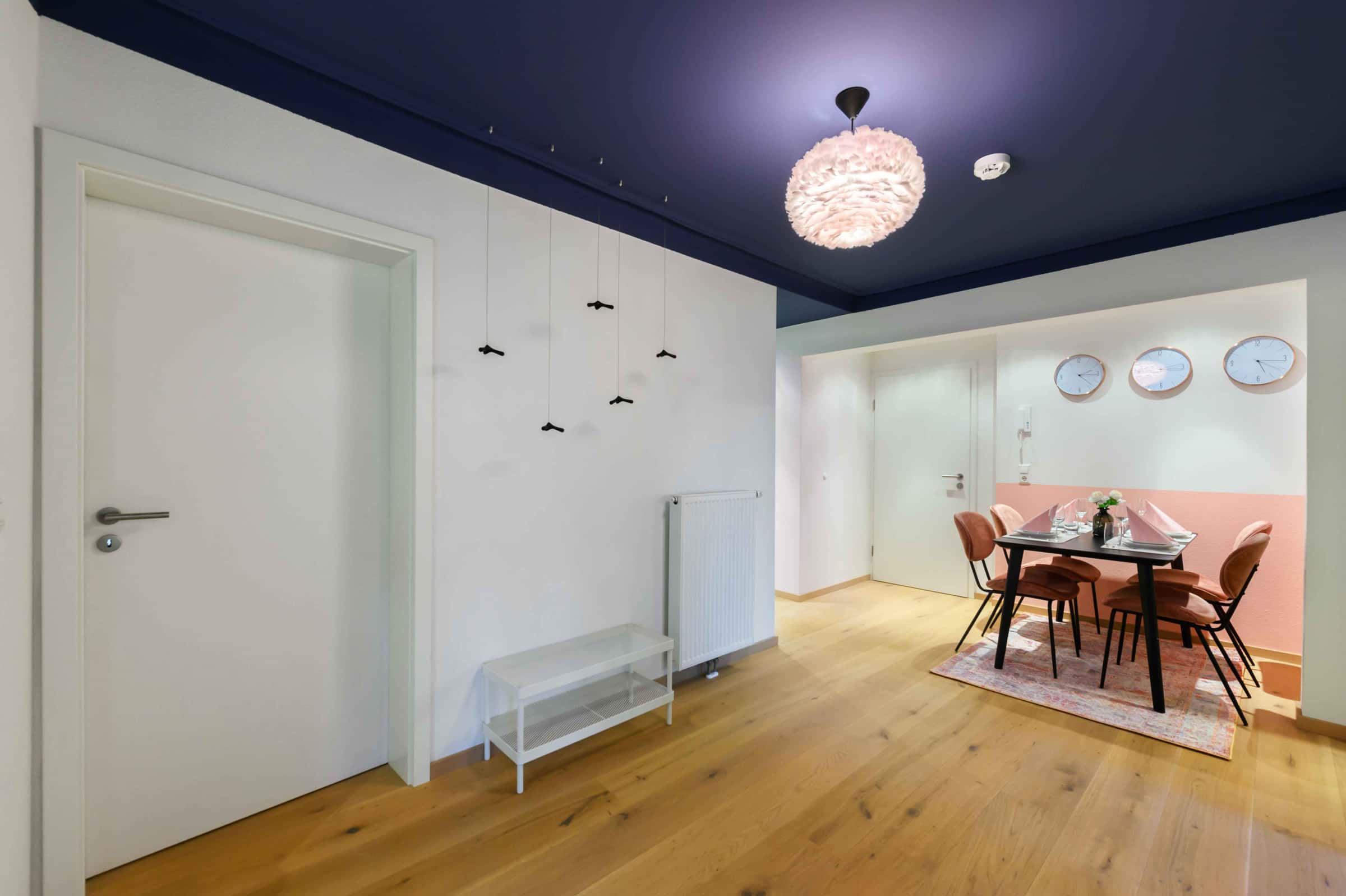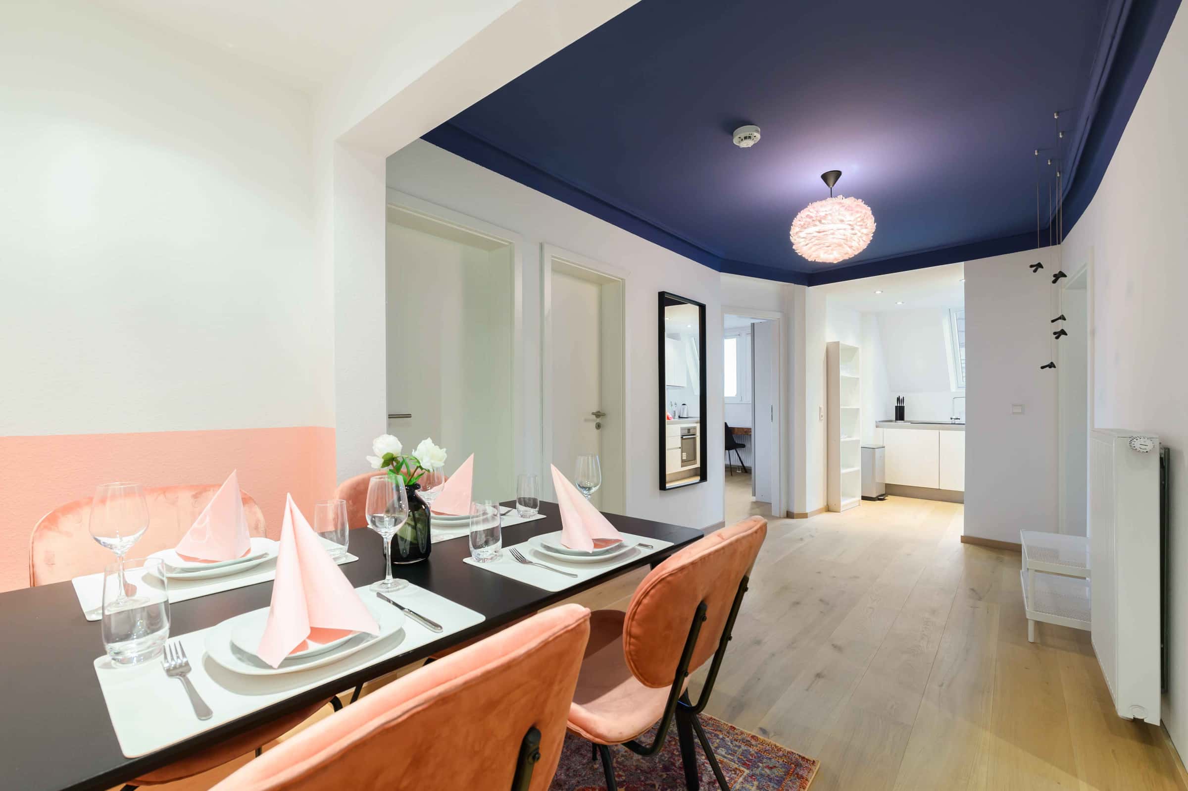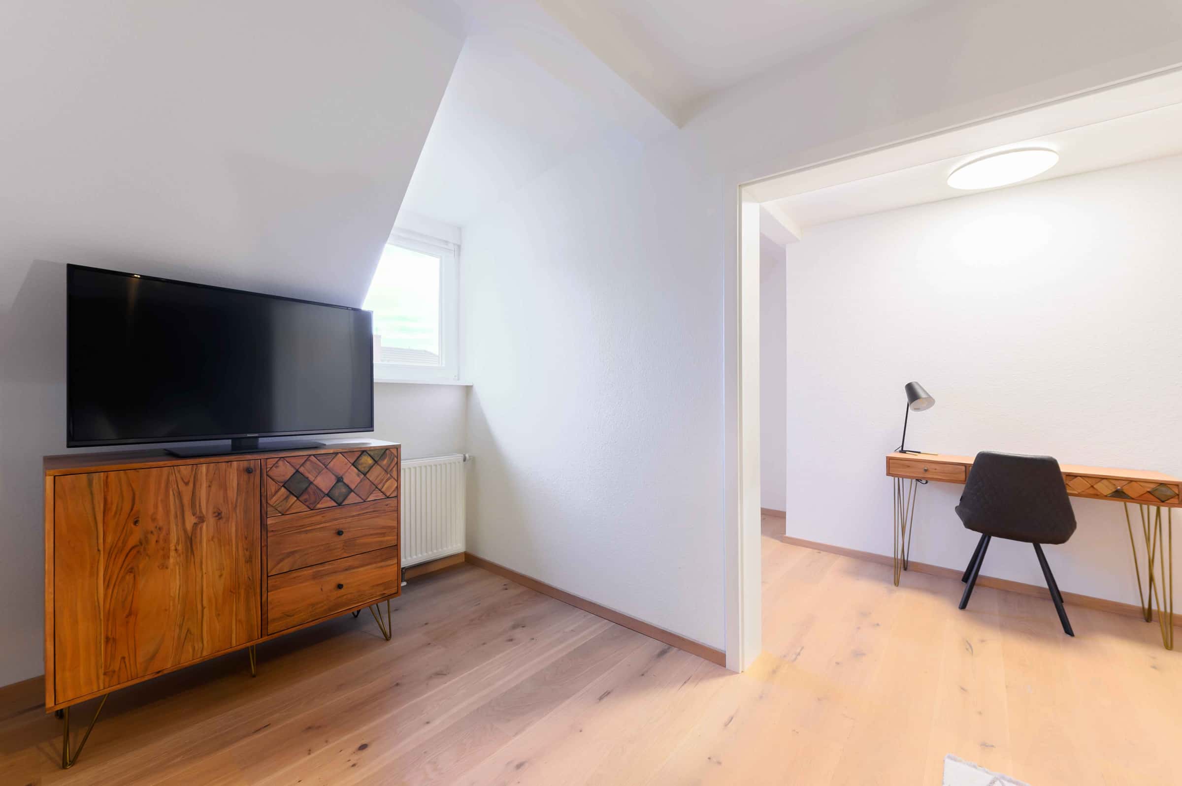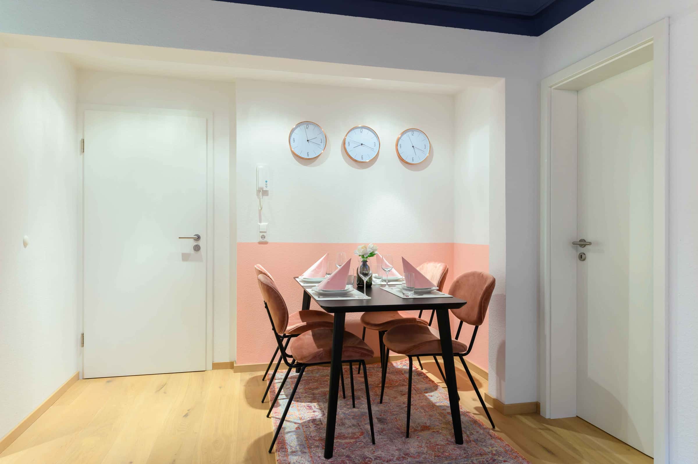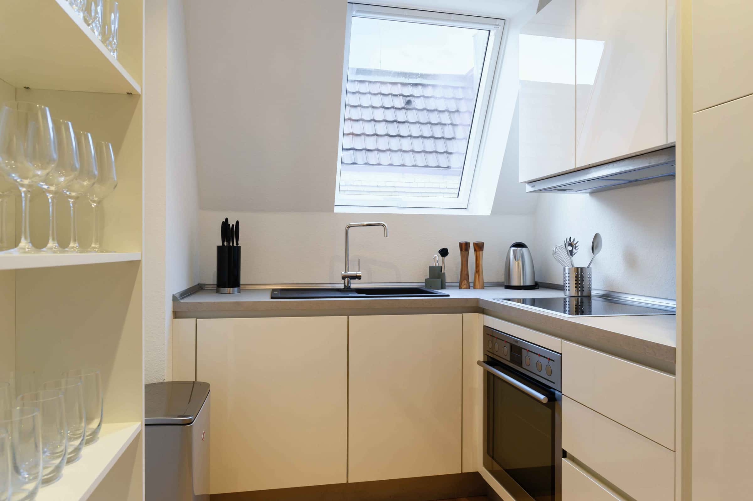 Our flats fulfil all your daily living requirements. Every flat comes readily equipped with a kitchen, including refrigerator, cooking equipment and dishes. Flats also include a washing machine and Wi-Fi Internet. Each room is fully furnished and offers a comfortable bed with fresh linen and a workspace. The area provides you with several shopping opportunities and excellent connections to public transport.